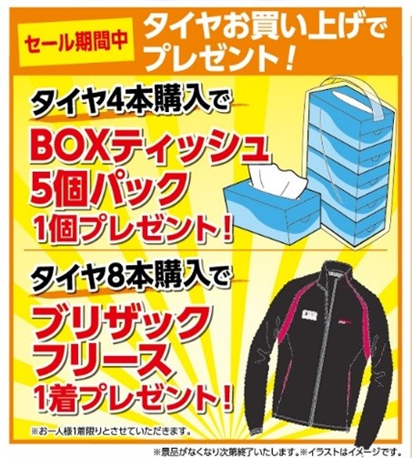 タイヤ4本ご成約・ご購入の方やタイヤ8本まとめ買いされた方に