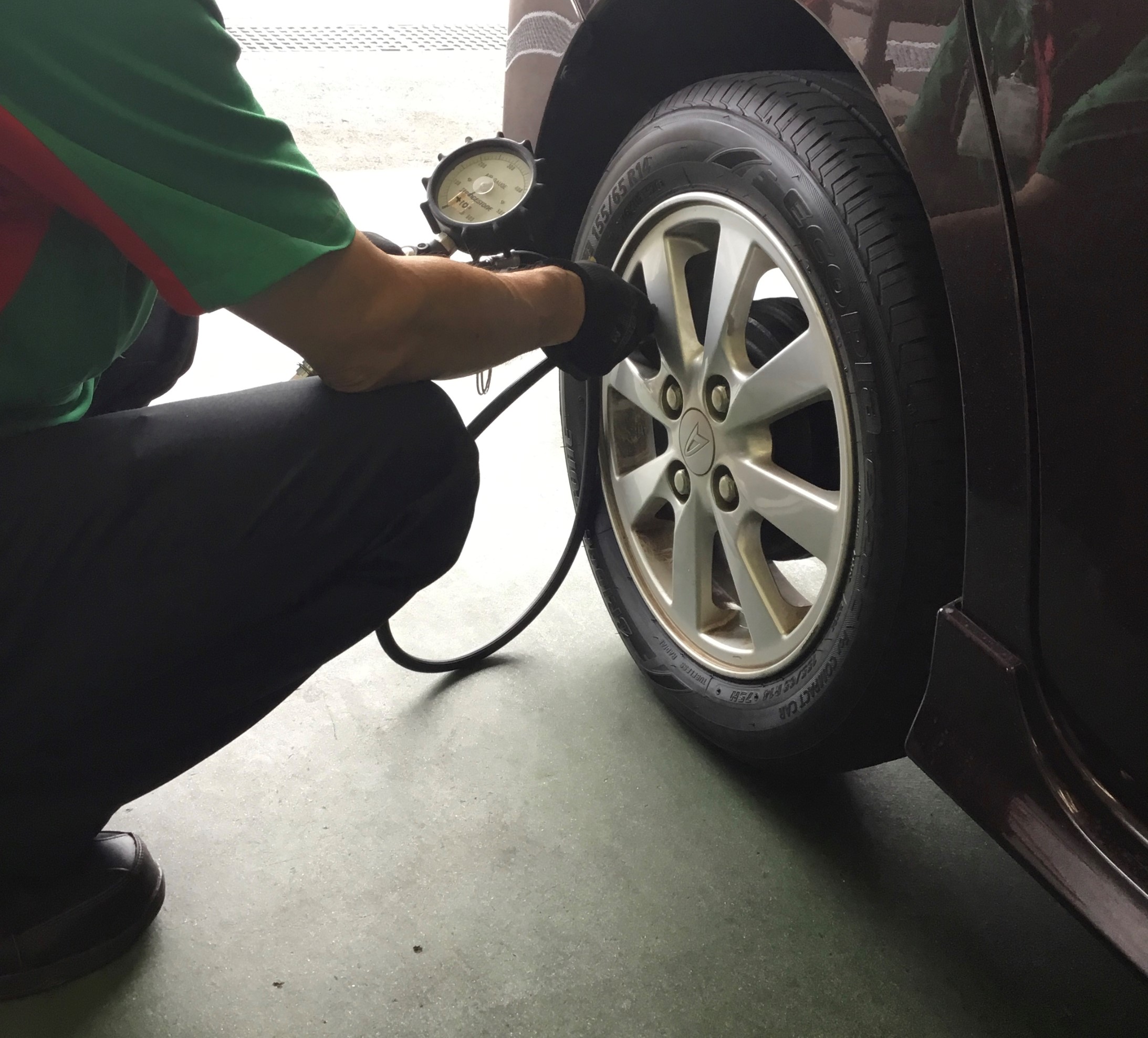 100km点検では、ナットの増し締めと空気圧の確認を無料で行っています。