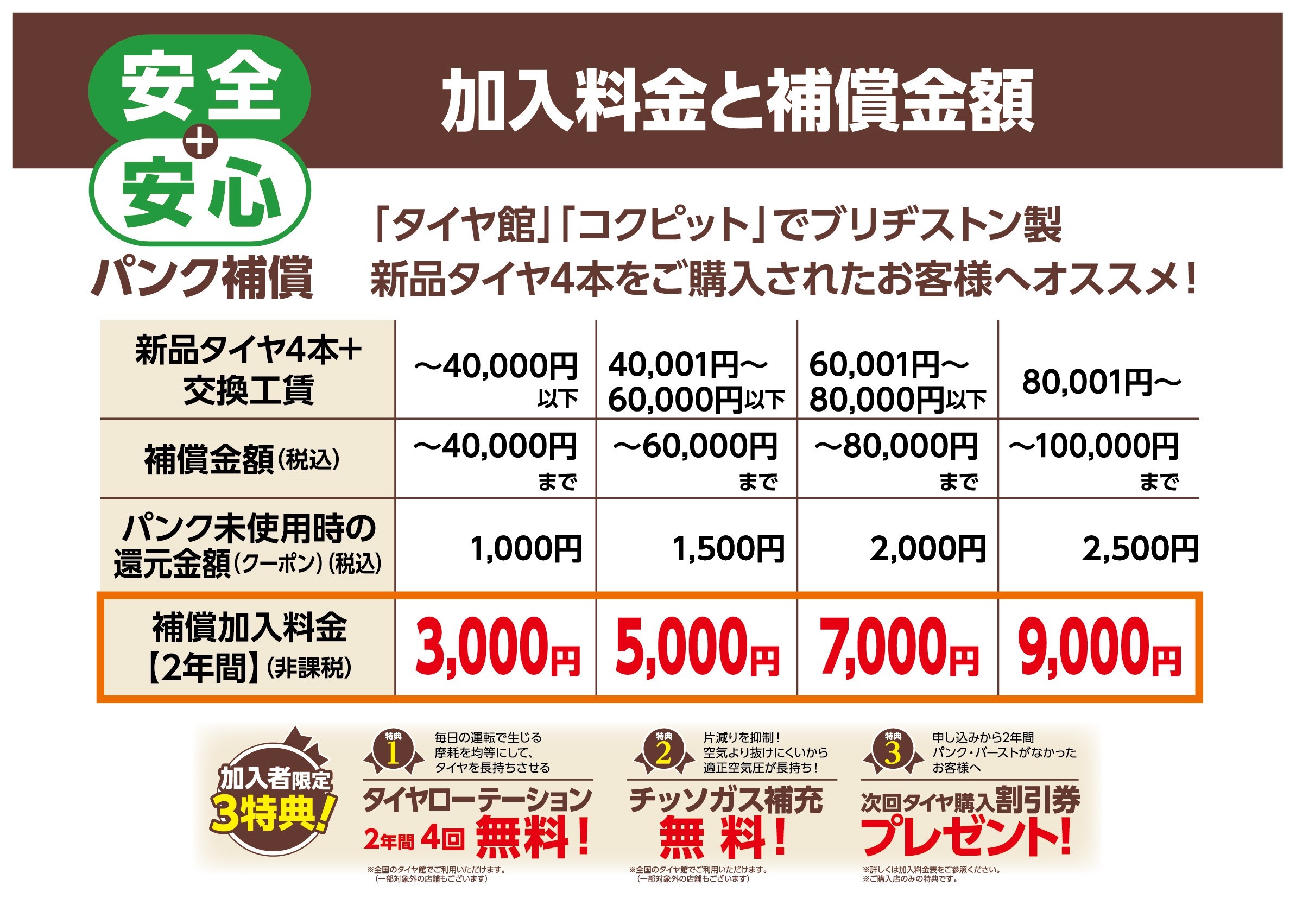 なんとパンク1本の場合でも、4本交換出来るので、非常に手厚い安心の補償内容です!