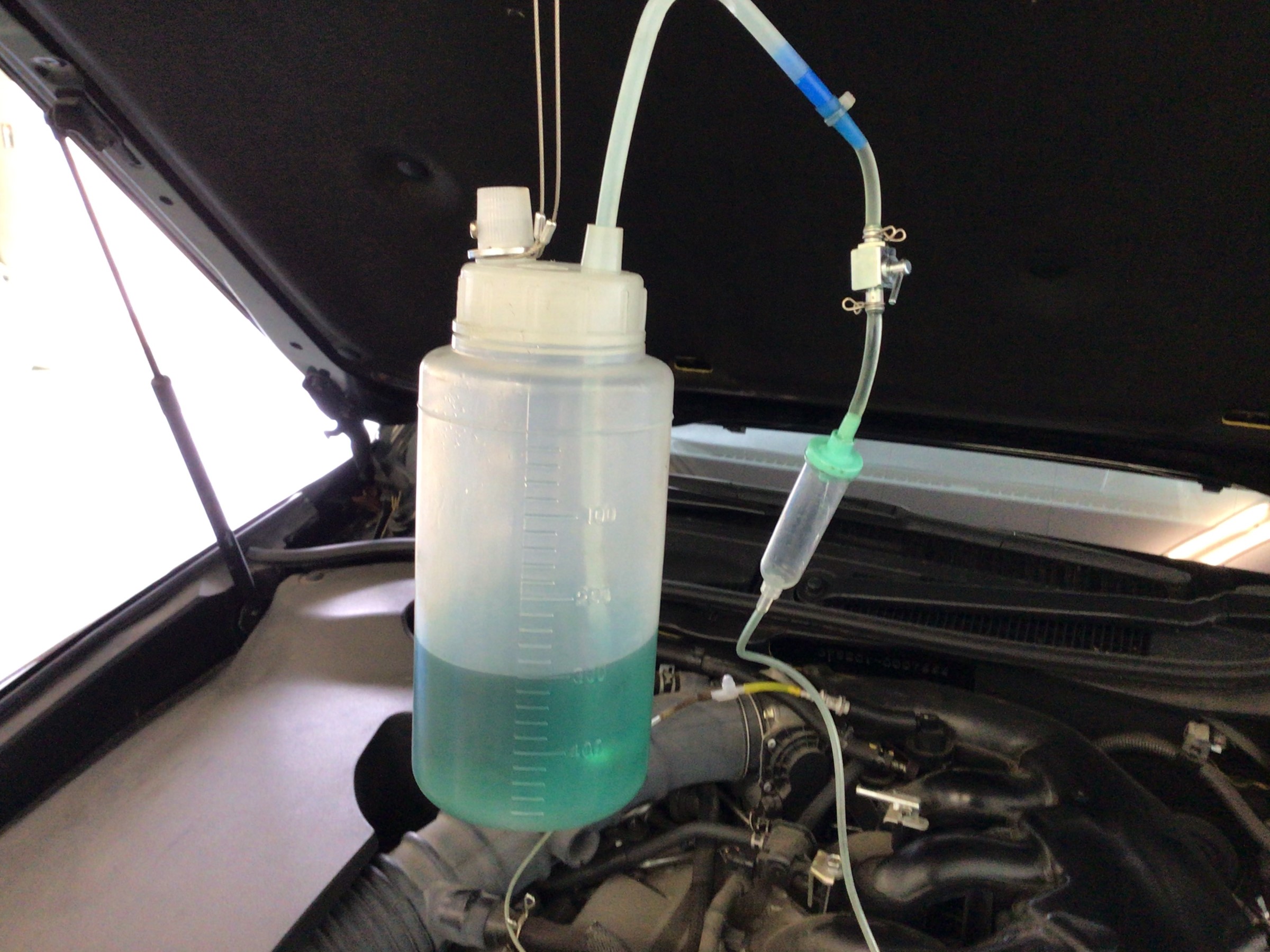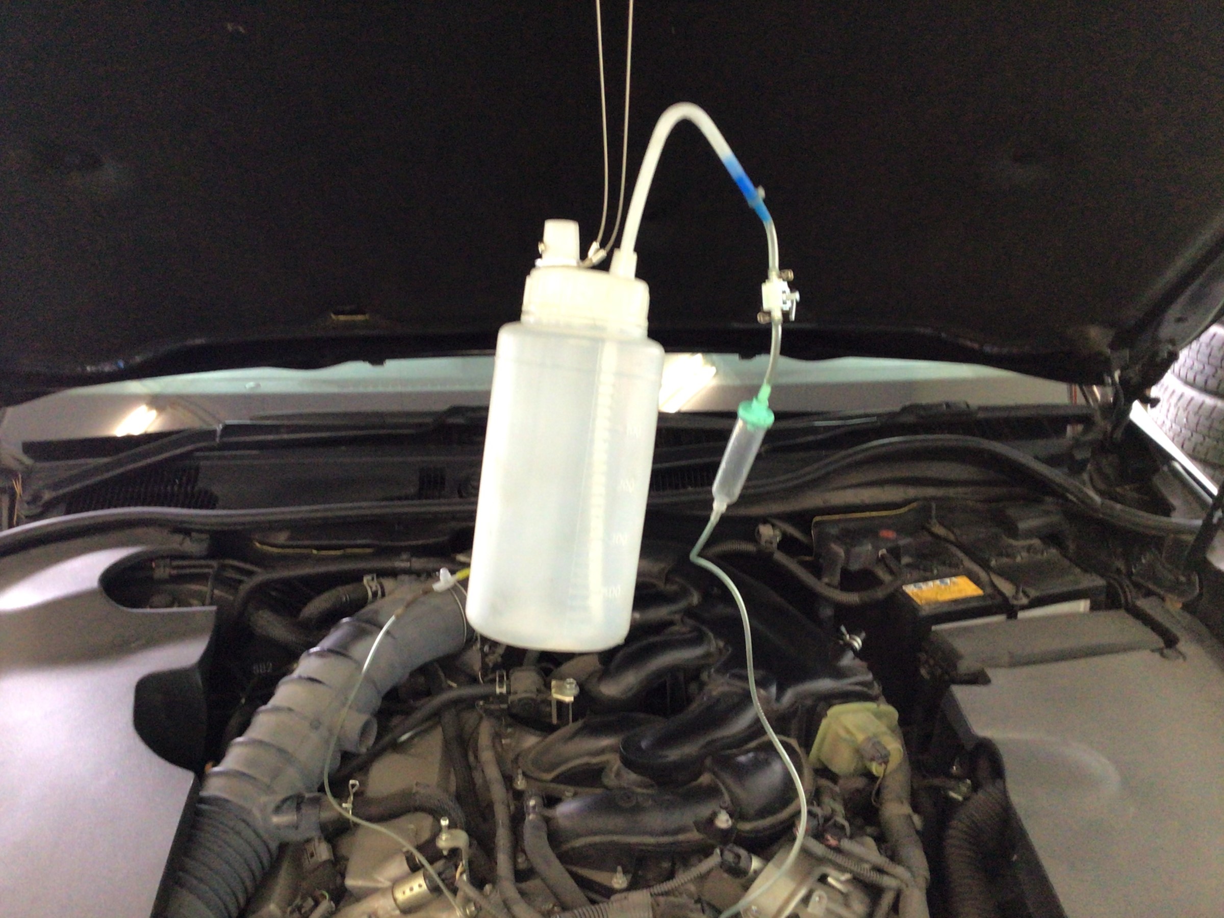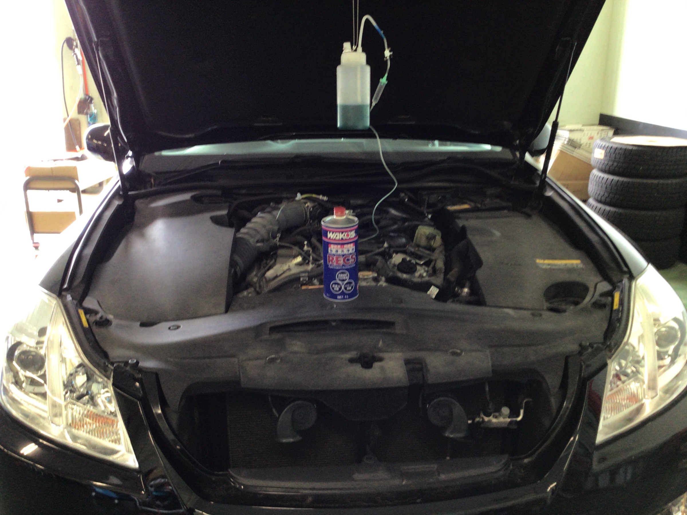 ボンネットを開け、RECS施工キットをセットし点滴を開始!