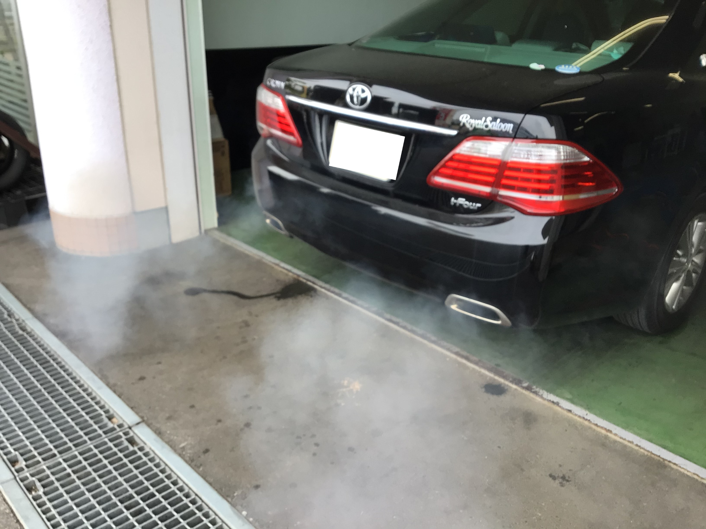 2000回転位で空吹かし何回かすると白い排気ガスが出てきます。