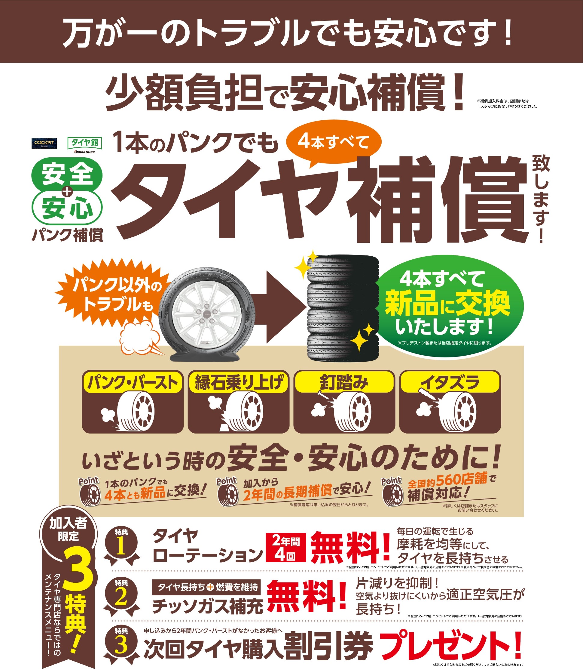 パンク補償サービスのご案内をしております(^^)/