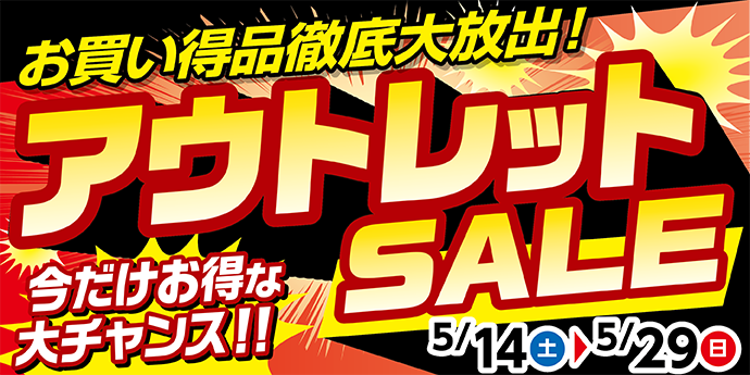 【アウトレットセール明日開催!】 ポスト 2022年5月13日 いつも当店のWEBをご覧頂きありがとうございます! 当店では明日、14日からアウトレットセールを開催致します! 開催期間:5月14日(土)~5月29日(日) お得なホイールセットやメンテナンス用品ご用意しております! 皆様のご来店心よりお待ちしております(^^)/