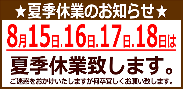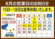 ~8月店舗休日のご案内~ ポスト 2022年8月14日 タイヤ館五所川原のホームページをご覧頂き誠にありがとうございます。 8月3日・10日・24日の水曜日が定休日で 15日・16日・17日・18日が夏季休業でお休みいたします。 31日の水曜日は営業いたします。 ご来店の際はお気をつけください。 ご不便をお掛け致しますがご理解の程よろしくお願い致します。 カテゴリ:お知らせ