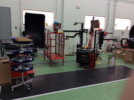 タイヤサービス機材のレイアウトも作業効率を考えた
