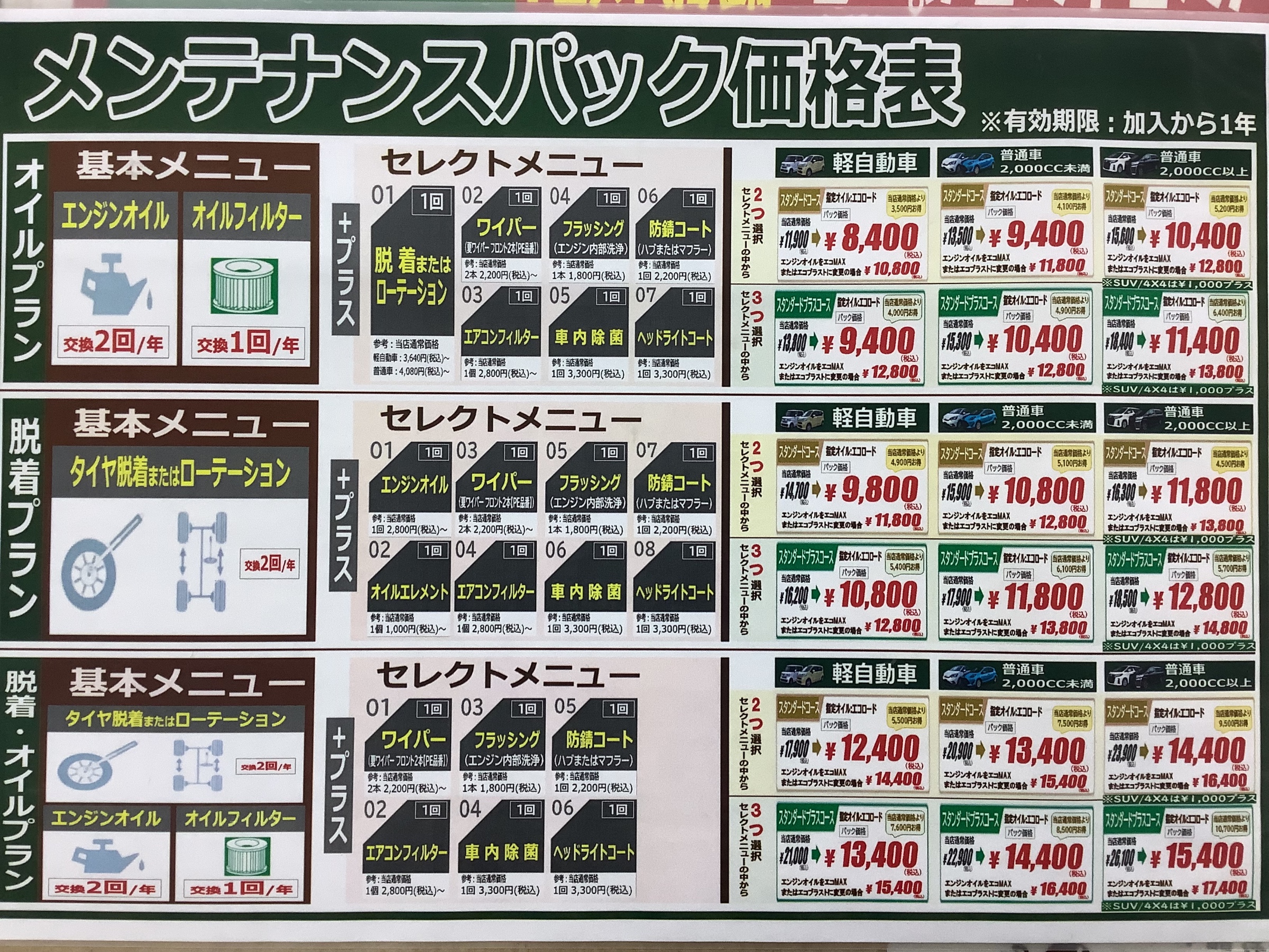 メンテナンスパックは3種類のプランがあります
