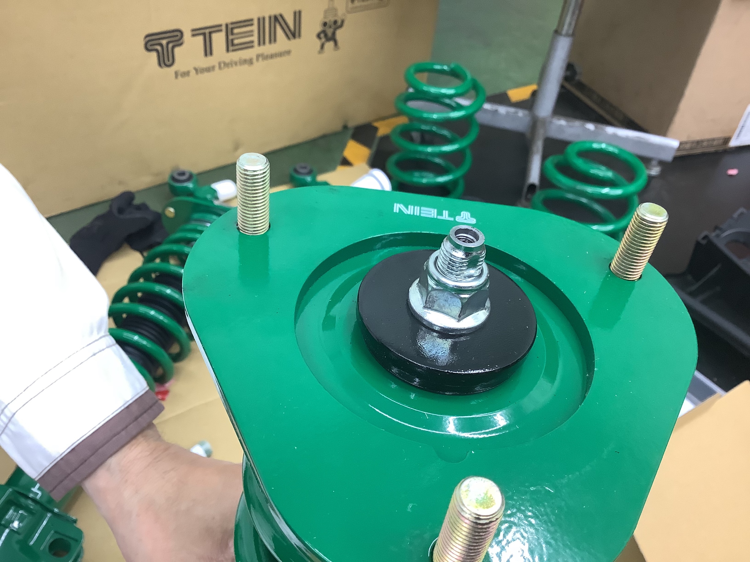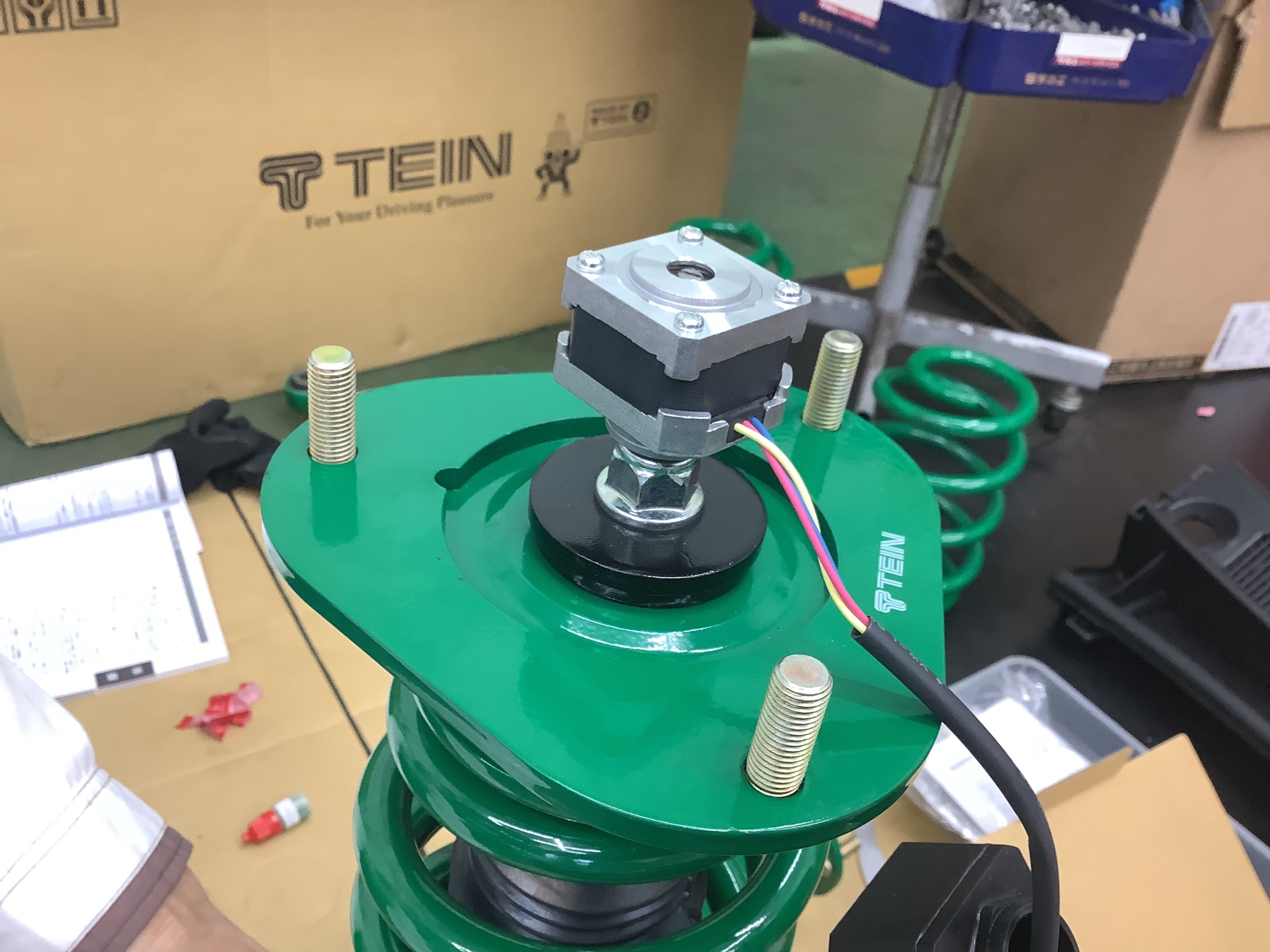 これはフロントの車高調で真ん中の所に減衰力を調整する機械をつけます!