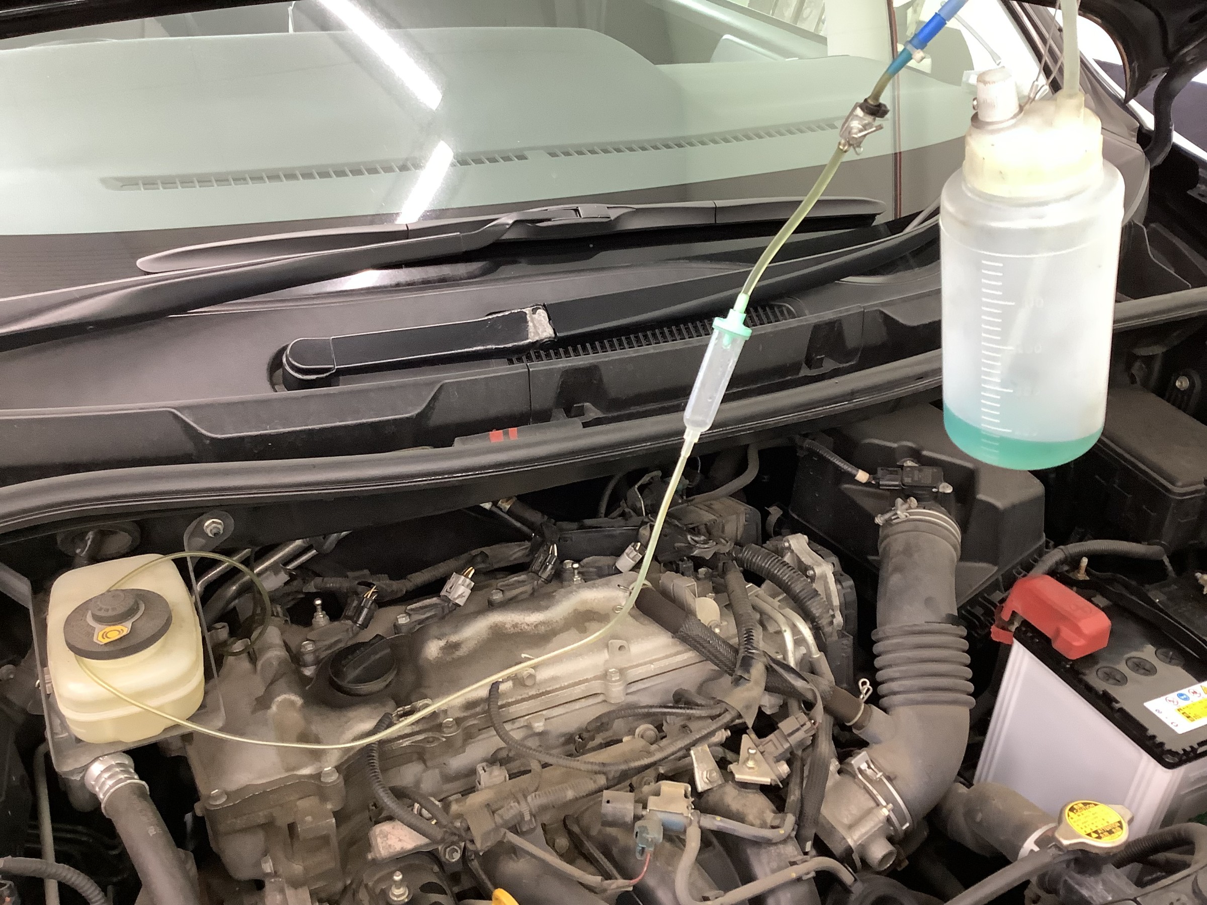 RECSの溶剤をエンジンのインテーク側へ時間をかけて注入していきます