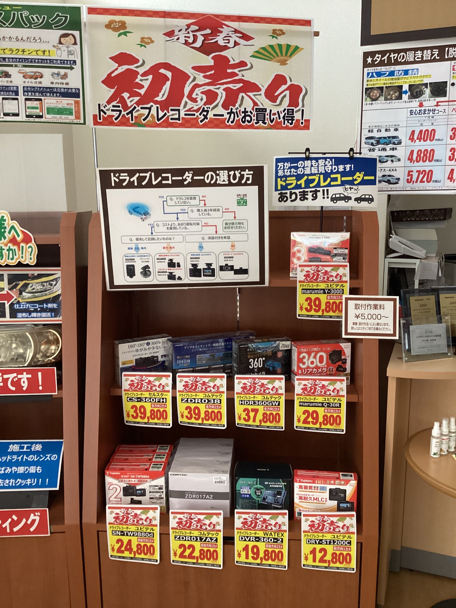 新春初売り【ドラレコキャンペーン】 ポスト 2024年1月1日 新春初売り2014年1月5日スタート ドライブレコーダーをご購入、買換えをご検討中の方へ 当店、在庫ドライブレコーダー新春特別価格にて大放出! 在庫商品以外にも各メーカー最新モデルもお取り寄せOK! ドライブレコーダー、取付工賃も新春特別価格でお買い得となっています。 是非この機会にご来店、ご相談ください。 当店ご利用初めての方も見積りだけでも大丈夫ですのでお気軽にご来店ください。