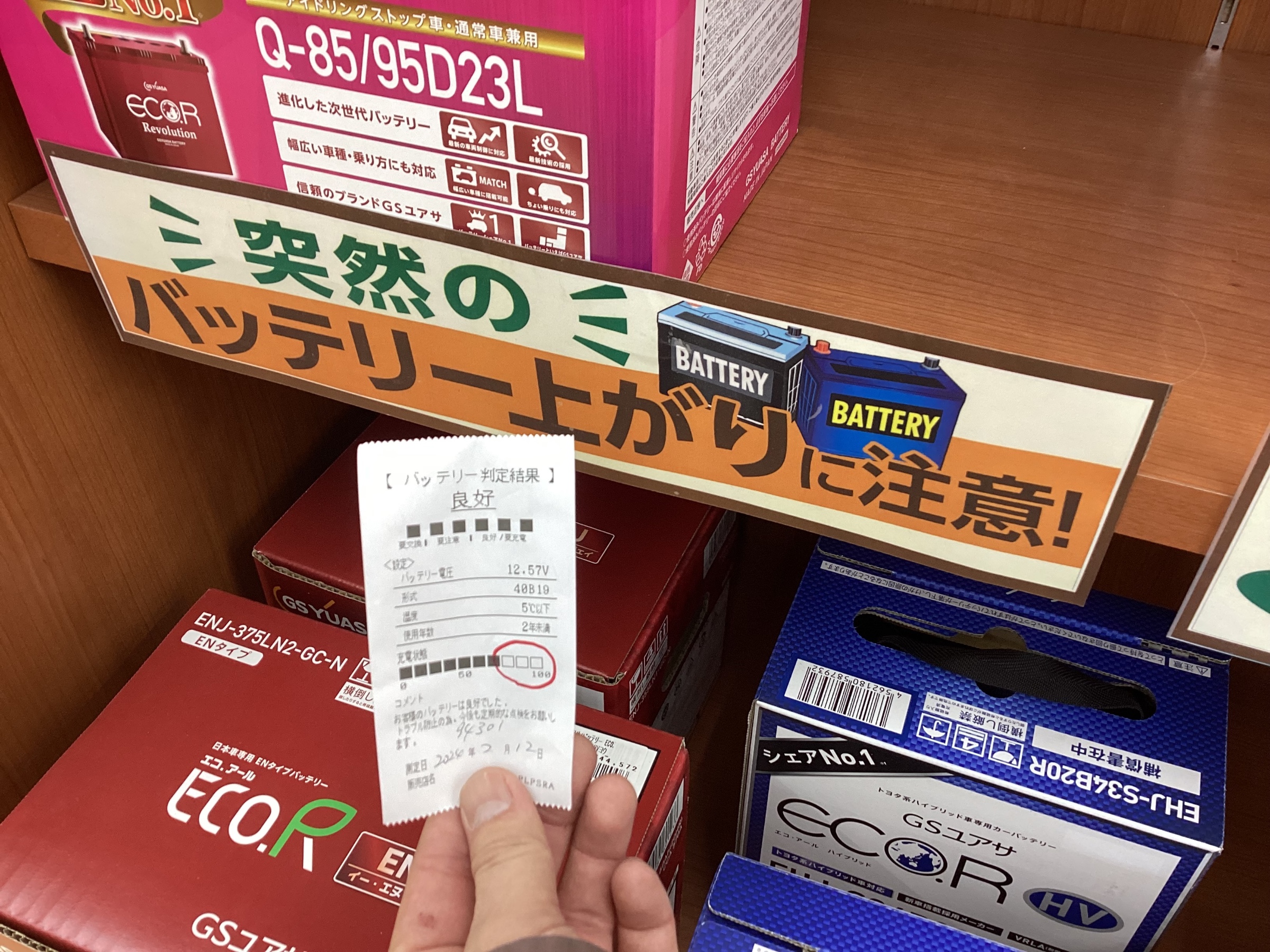今回夏タイヤ購入でご来店のお客様!タイヤ組み換え最中に安全点検を実施させていただきました〜 点検の中で今回はバッテリー点検をピックアップしてみようと思います、、