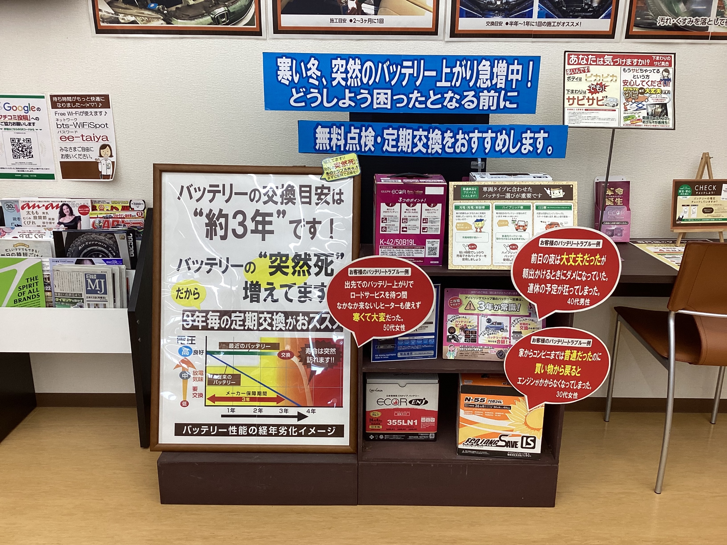 当店ではこのように↑バッテリーブースがありますので待ち時間の合間に是非ご観覧ください!