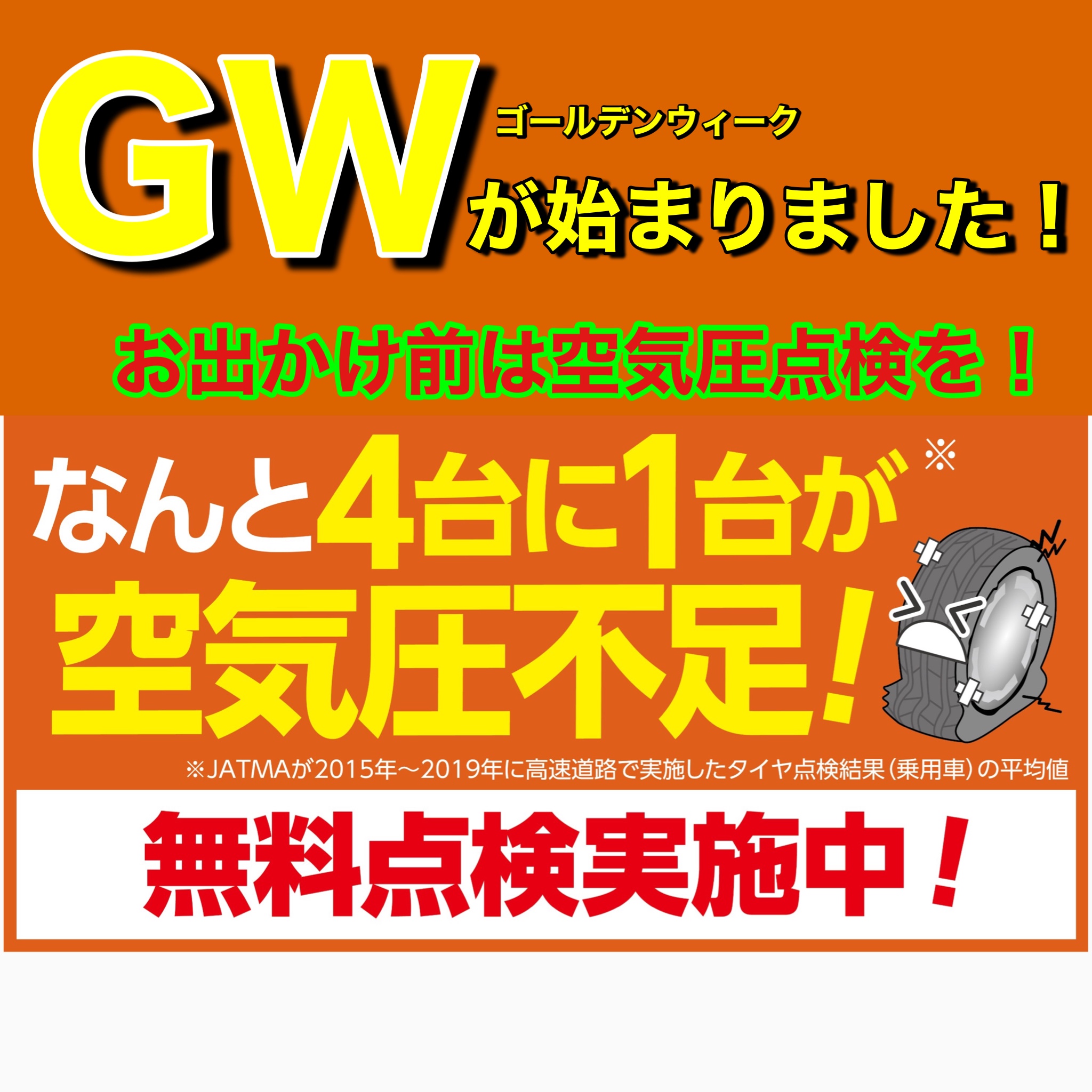 お出かけ前にタイヤ館へ!