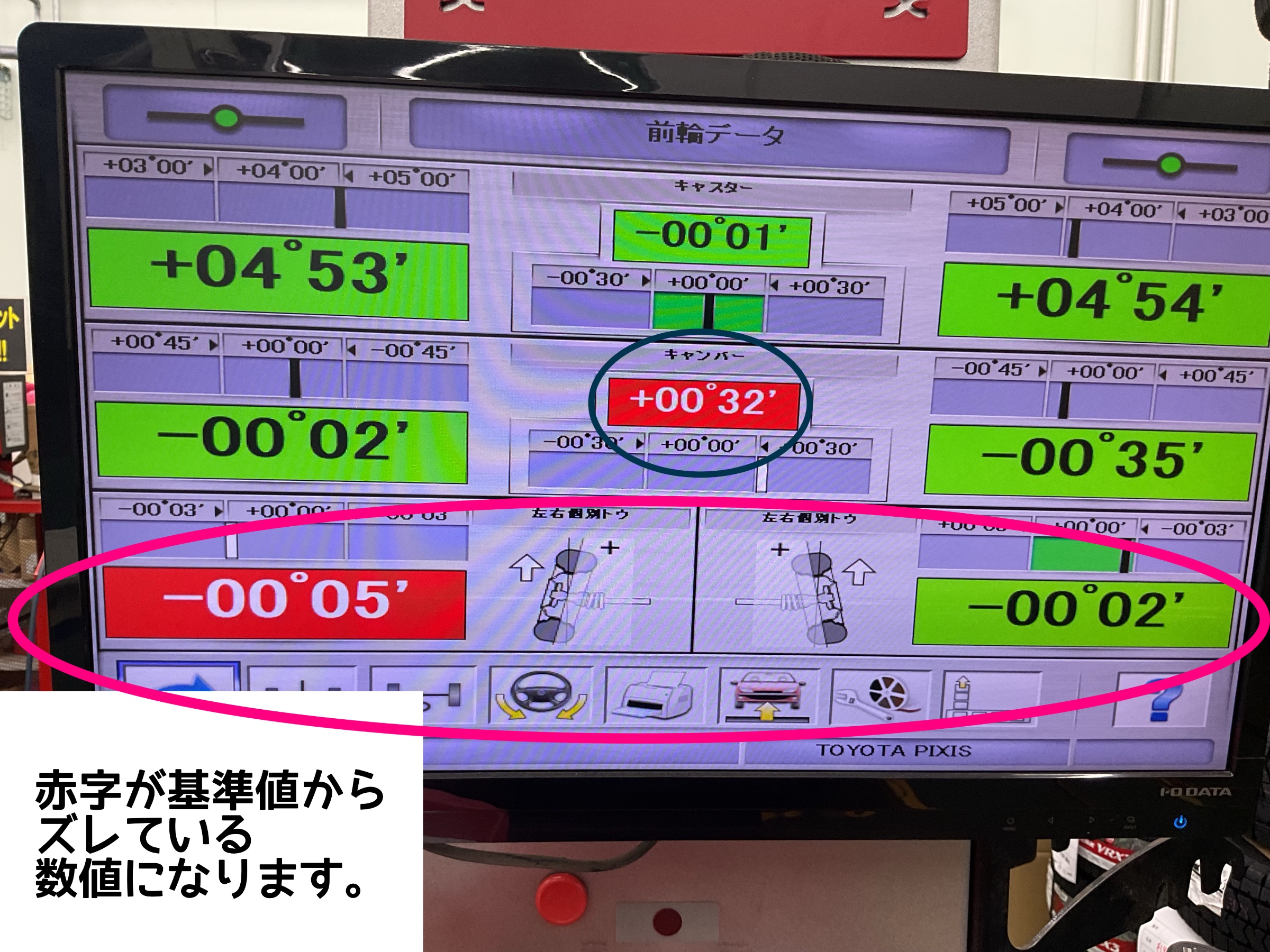このまま走行するとタイヤが変に減ってしまいます。