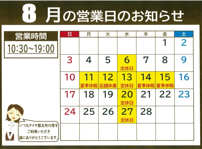 10日までにオイル交換やメンテナンスをオススメいたします。