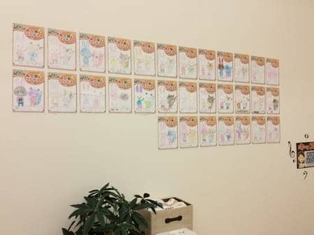 ご来店頂いたお子様たちが塗ってくれたぬりえを、店内に貼らせて頂いております!
