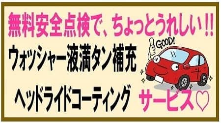 おクルマのメンテナンス応援! ポスト 2016年6月20日 今月は県内各地で、色々なイベントが目白押し・・・お出掛けする機会が増えおクルマも大忙し、そんな愛車の空気圧調整やメンテナンスは最近していますか?まずはしっかり点検をして楽しい気分でお出掛けしてみませんか?当店ではいつでも無料で安全点検を実施しておりますのでお気軽にご来店してみてください。ちょっとうれしいサービスもご用意しております。