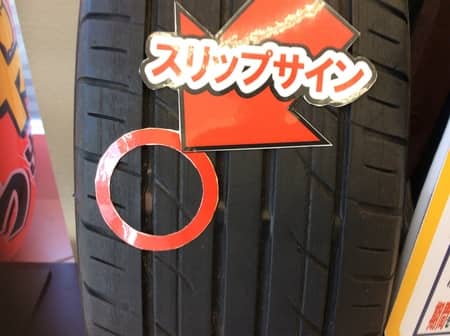 このスリップサインと接地面の高さが一緒になると車検も通らなくなり使用できなくなります。