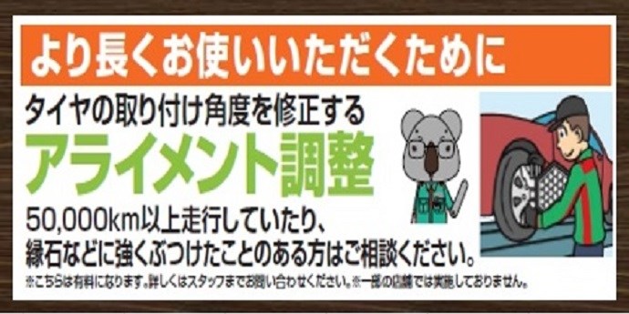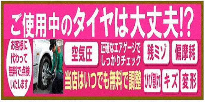 夏タイヤへ履き替えされた方へ ポスト 2017年5月9日 夏タイヤへ交換されてから1週間ほど走行した後で、 もう一度タイヤの空気圧とナットの締付けの点検をタイヤ館ではおすすめしております。 タイヤの不具合(パンクなど)の早期発見やより安心で快適におクルマを ご使用して頂く為に、無料でタイヤ点検をしております。 タイヤの減り方が偏っている場合は、アライメント測定・調整もおすすめです。 カテゴリ:お知らせ