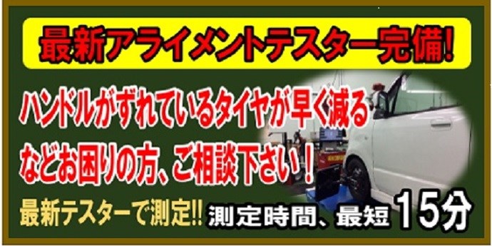 タイヤの接地角度の自然なズレ・・・ ポスト 2017年6月13日 タイヤの接地角度は自然とズレてくる事を知っていますか? 使用年数や走行距離、冬道での過酷な走りなど様々な要因で ズレてきます。その結果としてタイヤが偏摩耗したりハンドルが ズレていたりと兆候が現れてきます。 タイヤ館では新品タイヤに交換する場合はアライメント調整と 一緒にご提案しております。