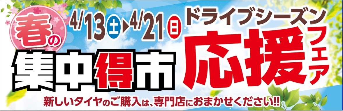 今タイヤ館では、春の集中得市 応援フェアを行っているので、