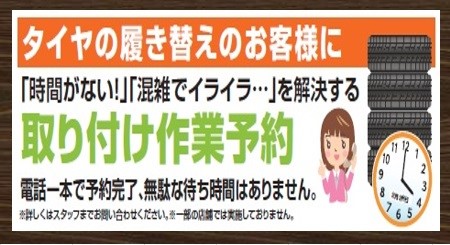 タイヤ交換予約も受付しておりますのお気軽にお問合せ下さい。