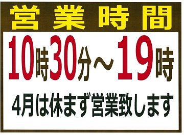4月営業時間のご案内 『4月は休まず営業いたします。』