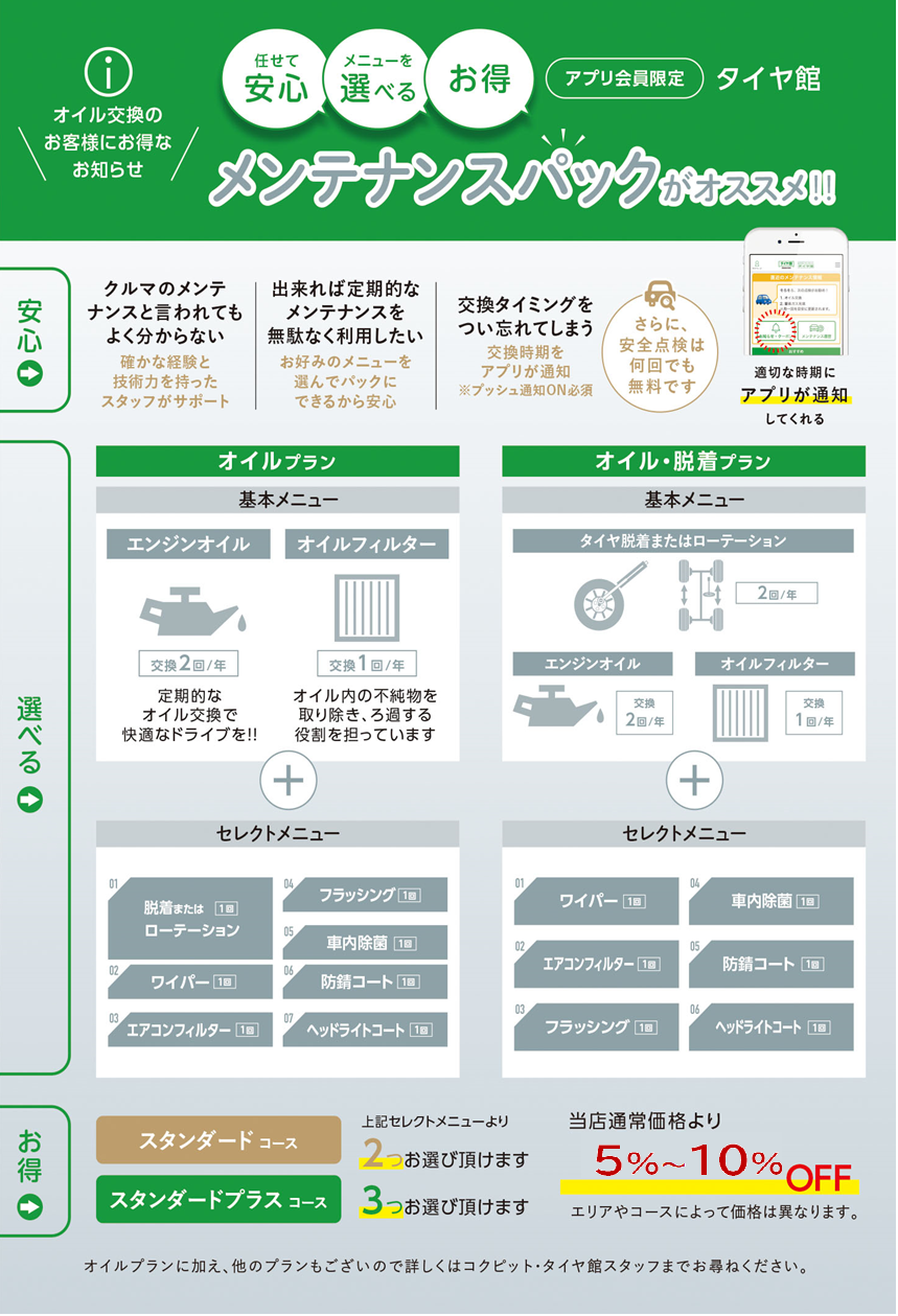 セレクトメニュー(ローテーション・ワイパー・エアコンフィルター・フラッシング・