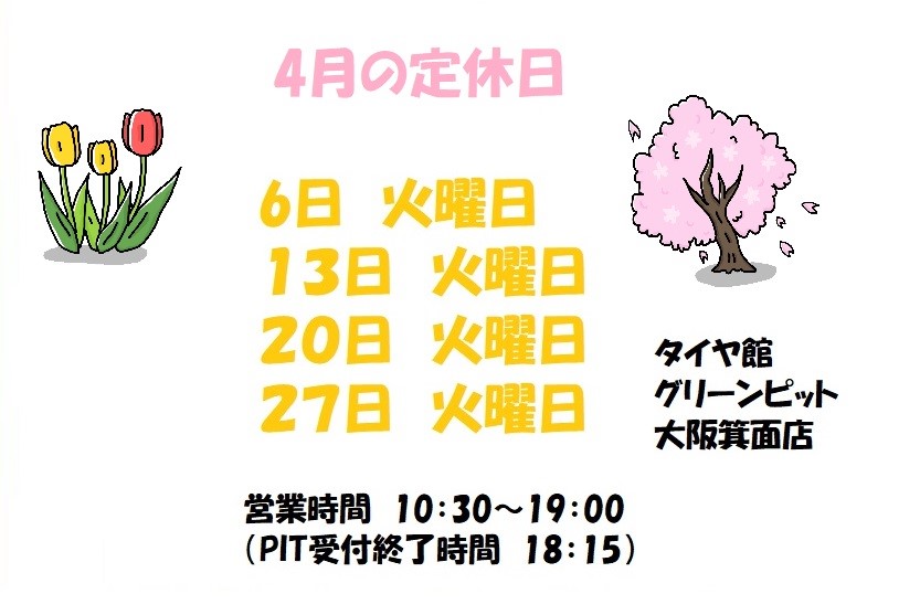 さてさて、今日は4月の定休日のご案内をさせていただきます!