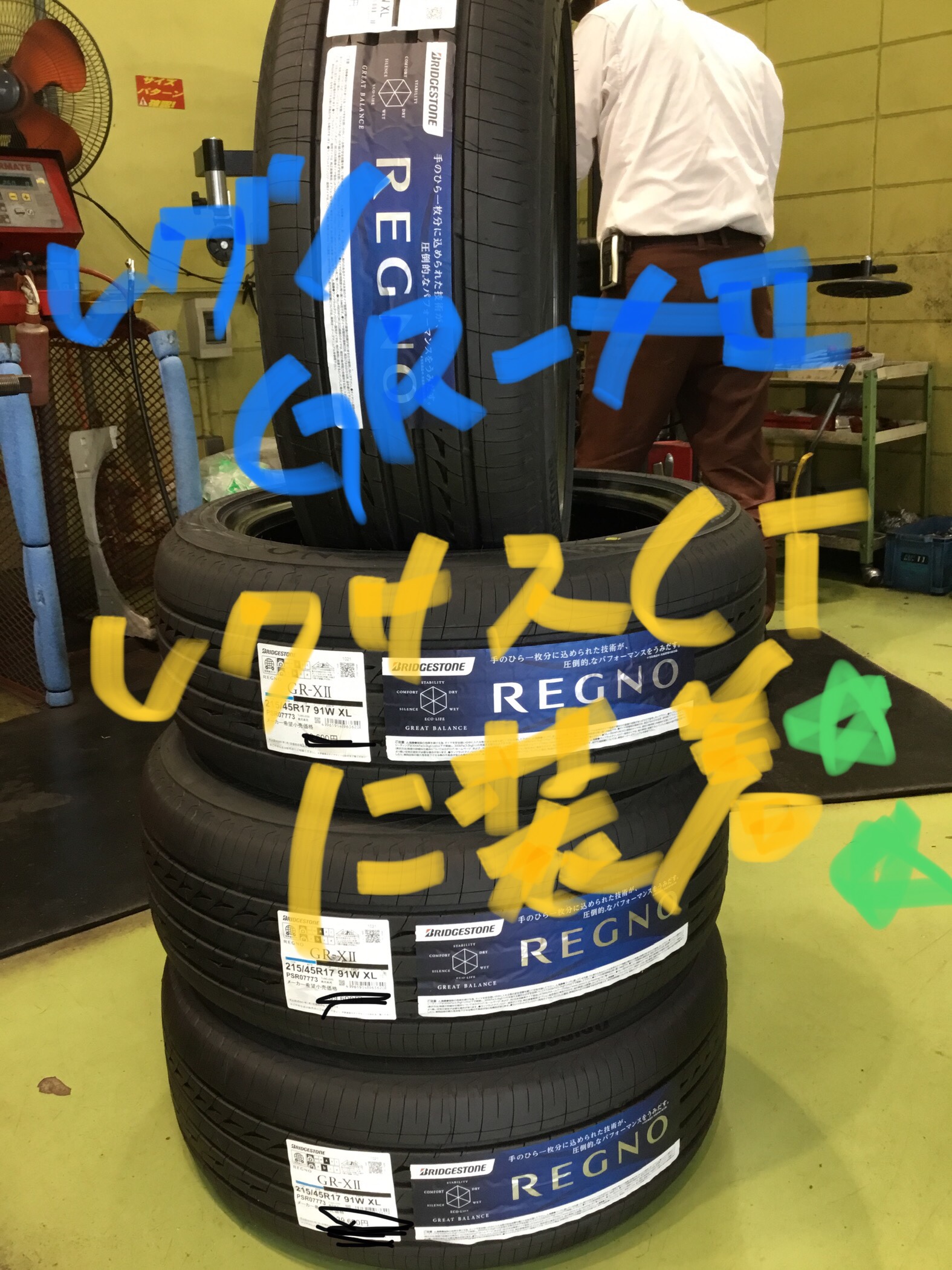 タイヤは「REGNO GR-XⅡ」サイズは215/45R17です。