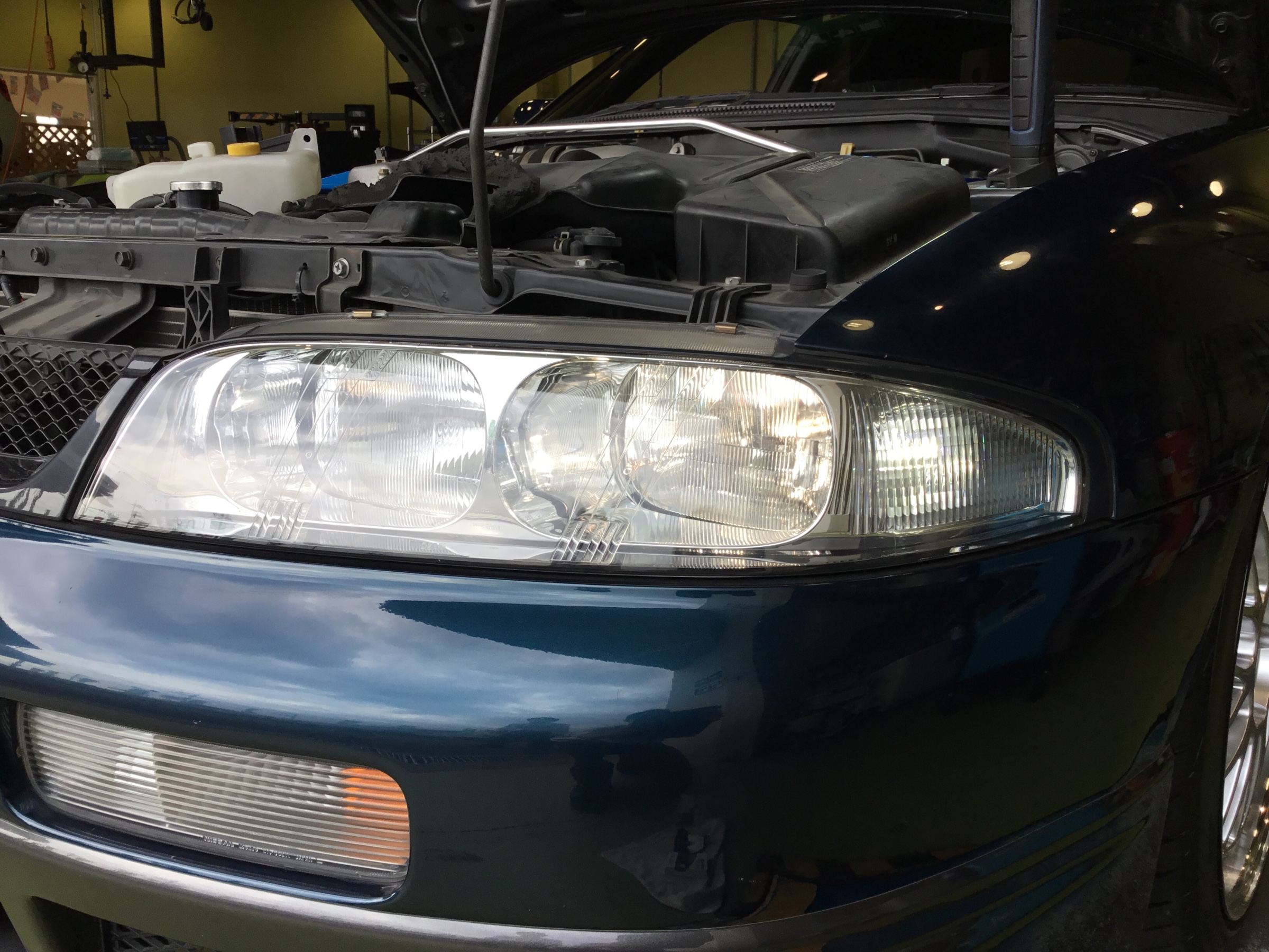 先日、スカイラインのお客様の作業にてフロントポジション球とロービーム球の交換をさせて頂きました。