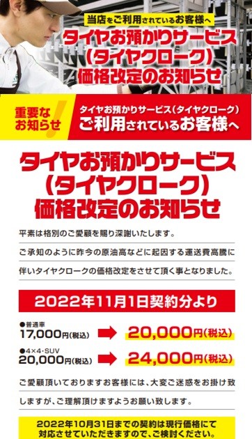 タイヤお預かりサービス(タイヤクローク)をご利用のお客様に大切なお知らせです