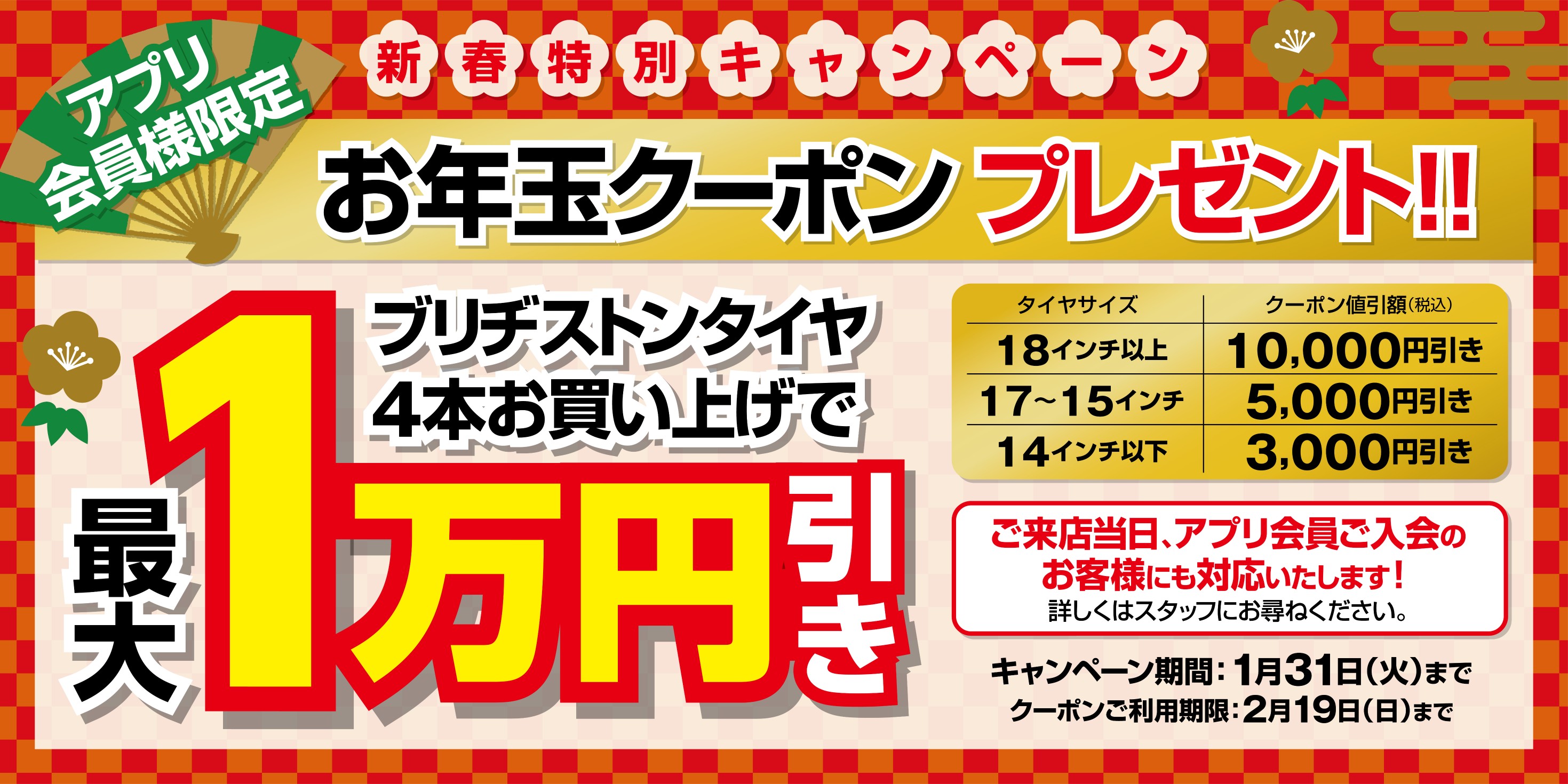 かならず全員がもらえる【タイヤ割引お年玉クーポン】を使って頂く事でタイヤが安く買えるんです!