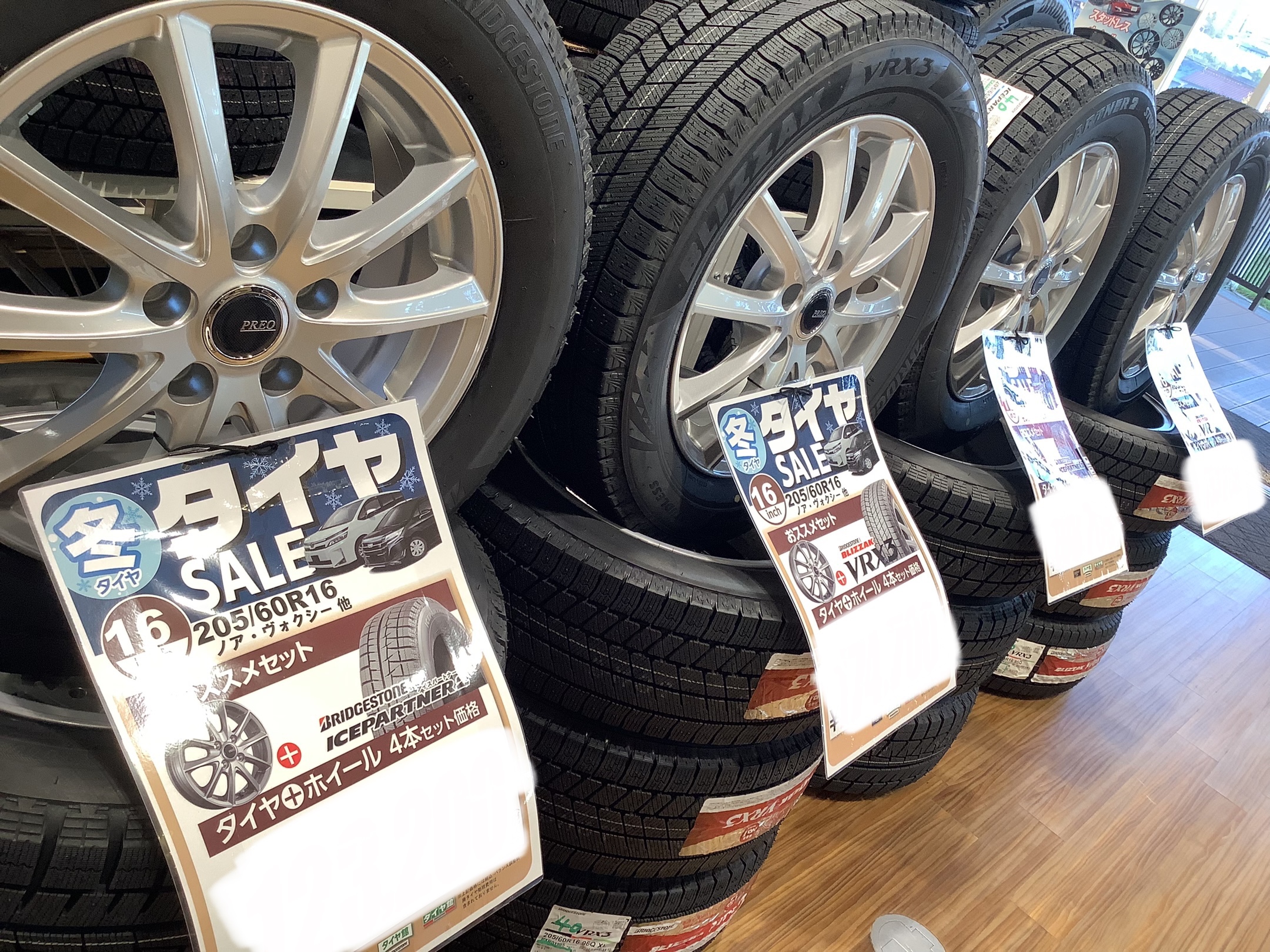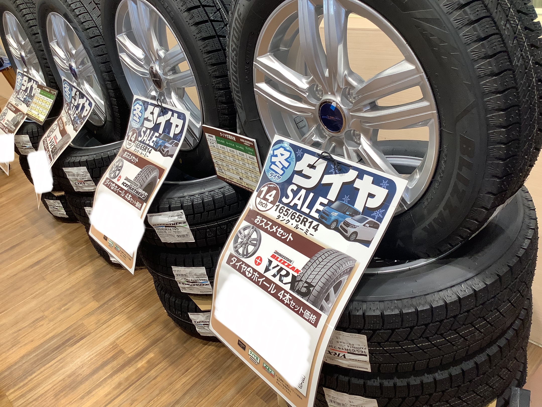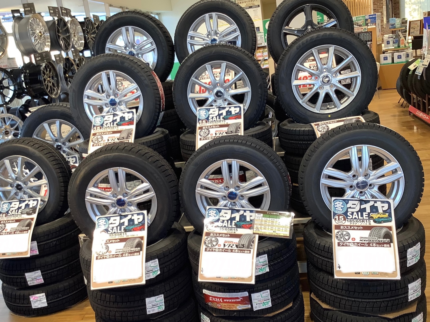 店頭でのスタッドレスタイヤ・ホイールセットの展示を行っております。