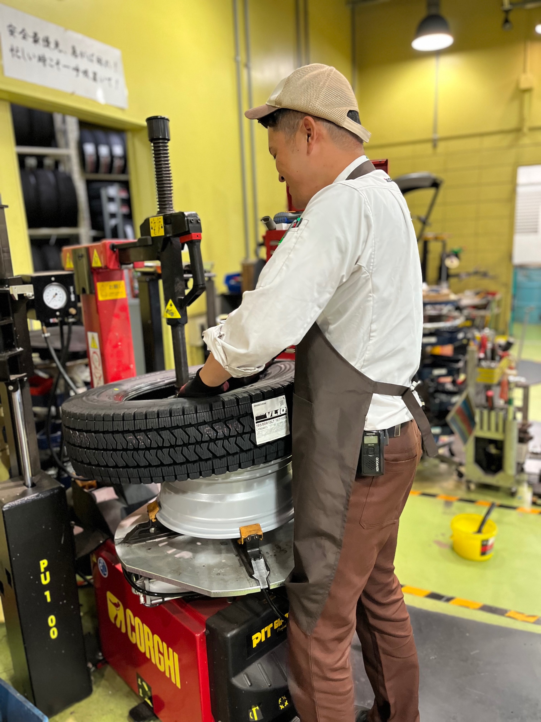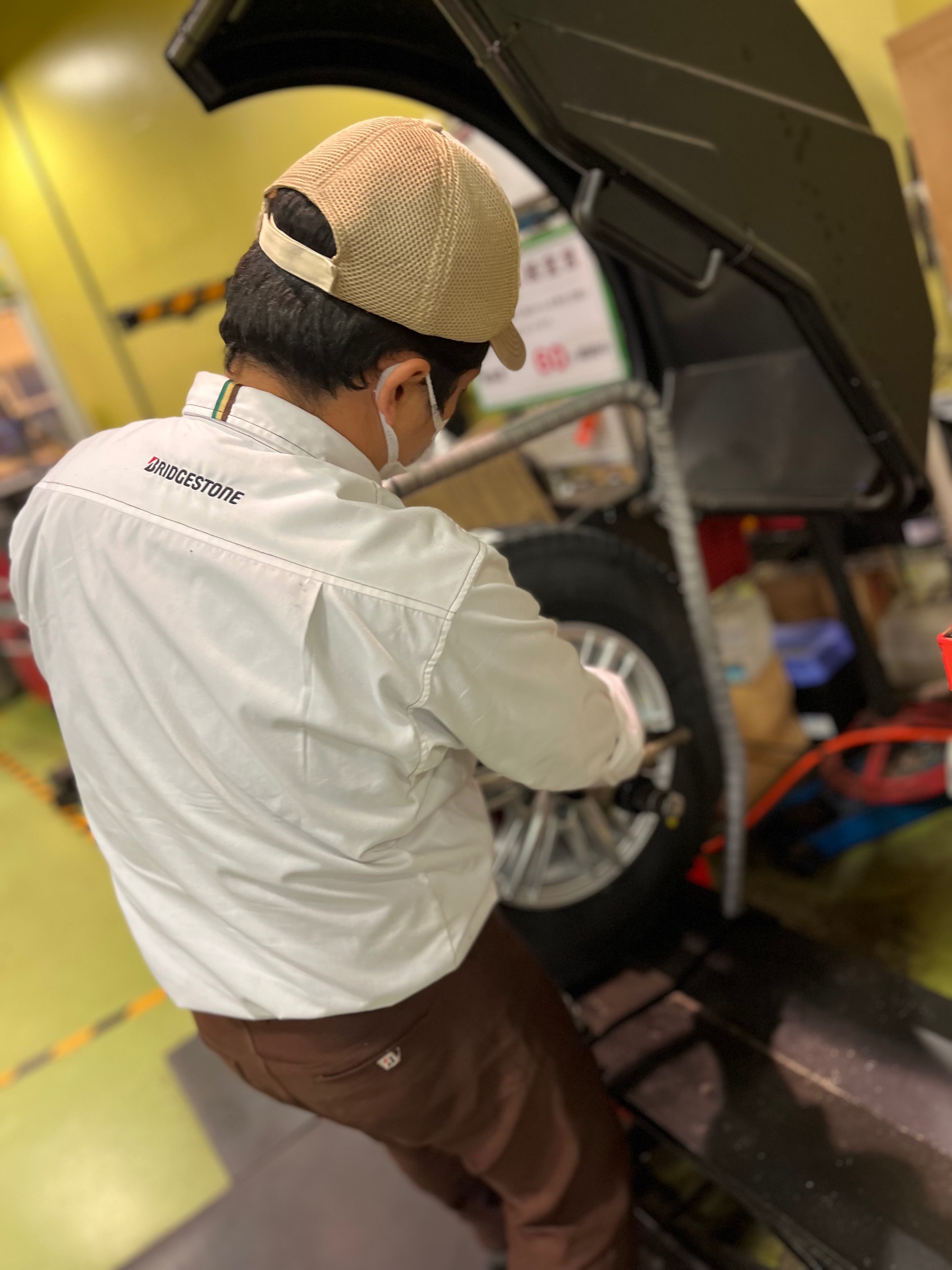 タイヤに異常が無いか確認中、、、