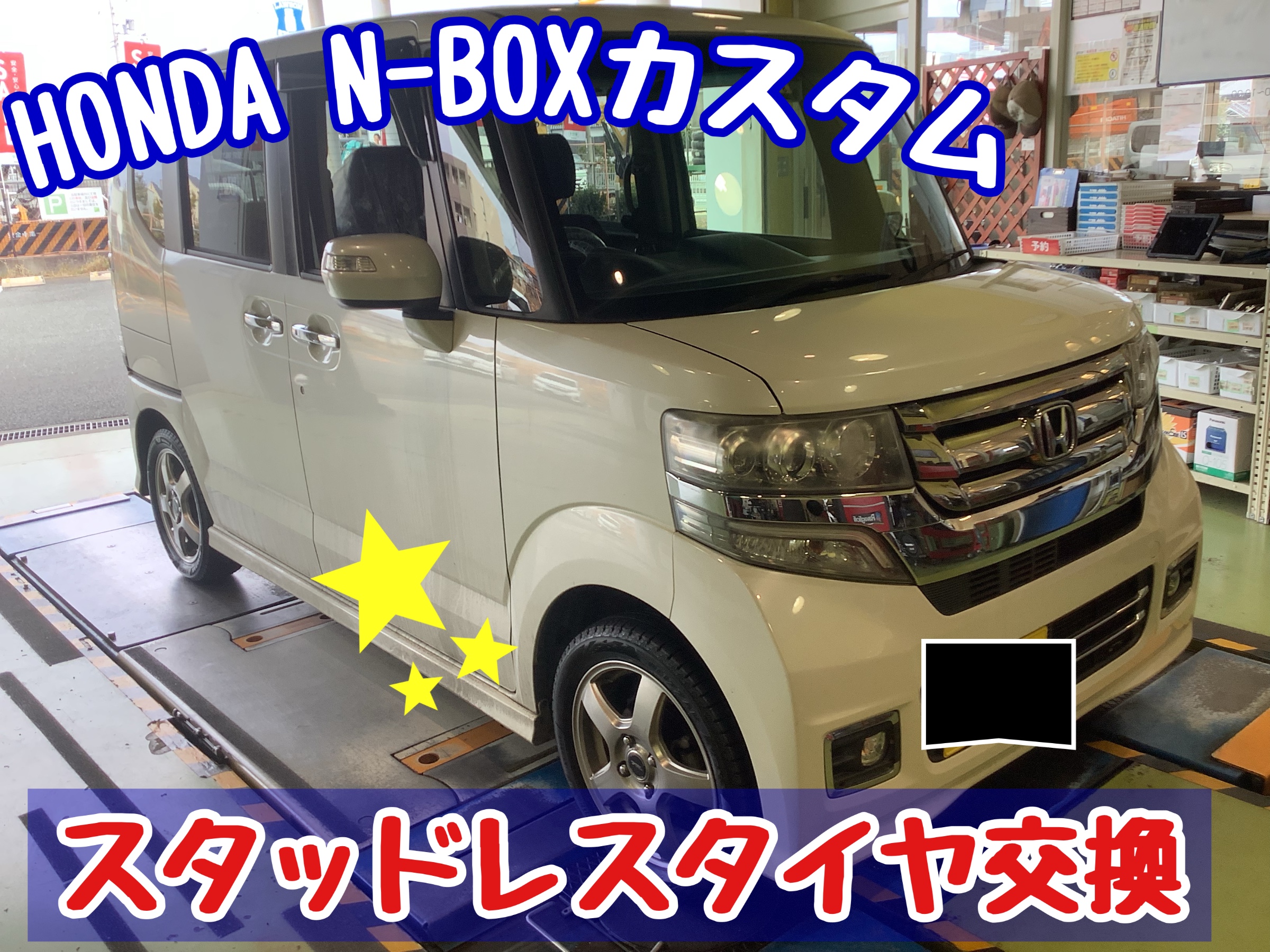 本日の記事は、HONDA NーBOXカスタム スタッドレスタイヤ交換です(*'▽')(*'▽')(*'▽')(*'▽')