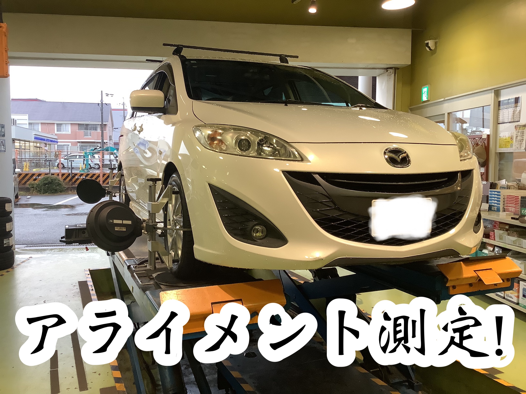 【マツダ プレマシー】タイヤ交換 アライメント調整