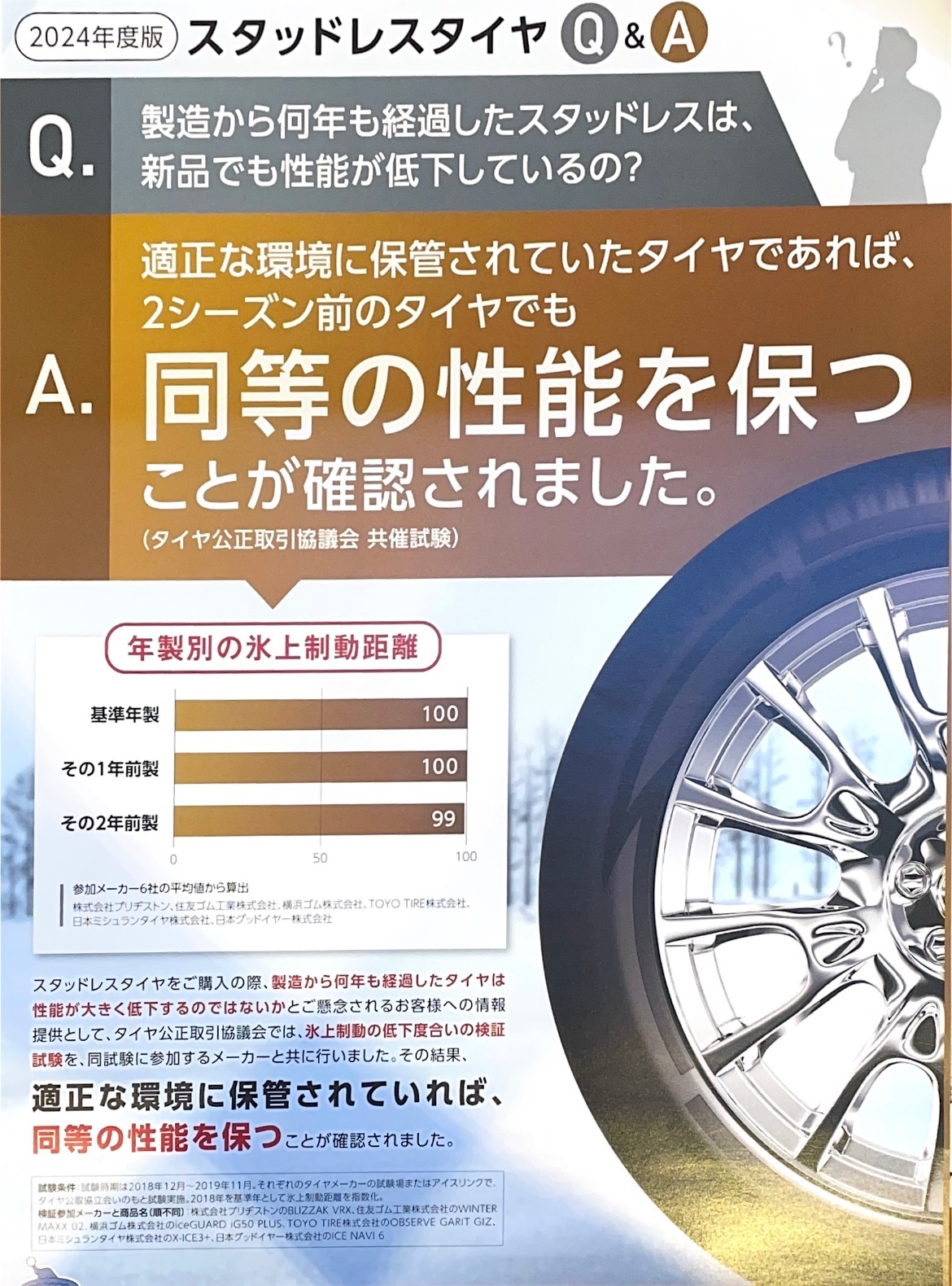 長期在庫スタッドレスタイヤの性能テストは国内の中立機関『タイヤ公正取引協議会』でも立証されています