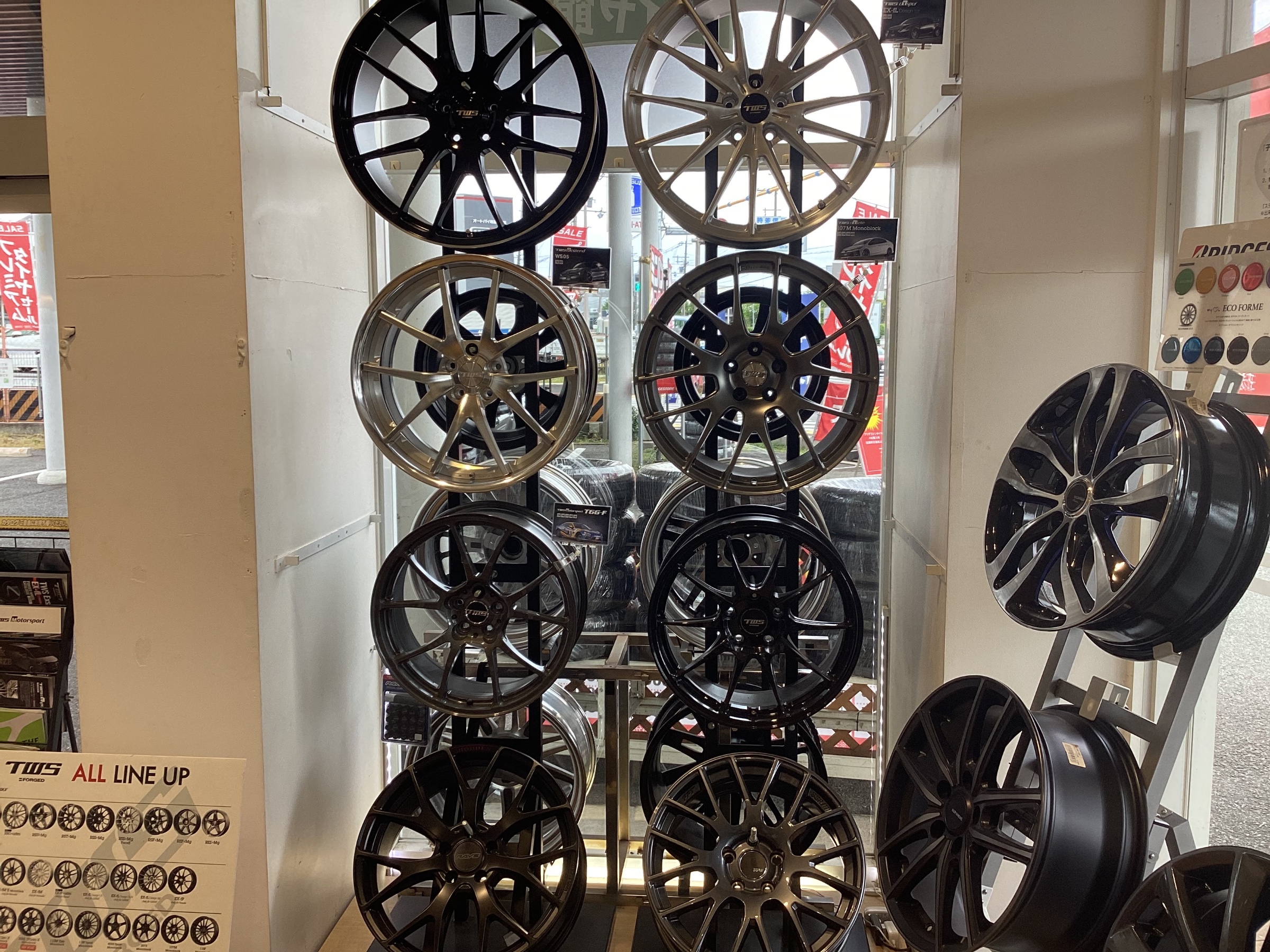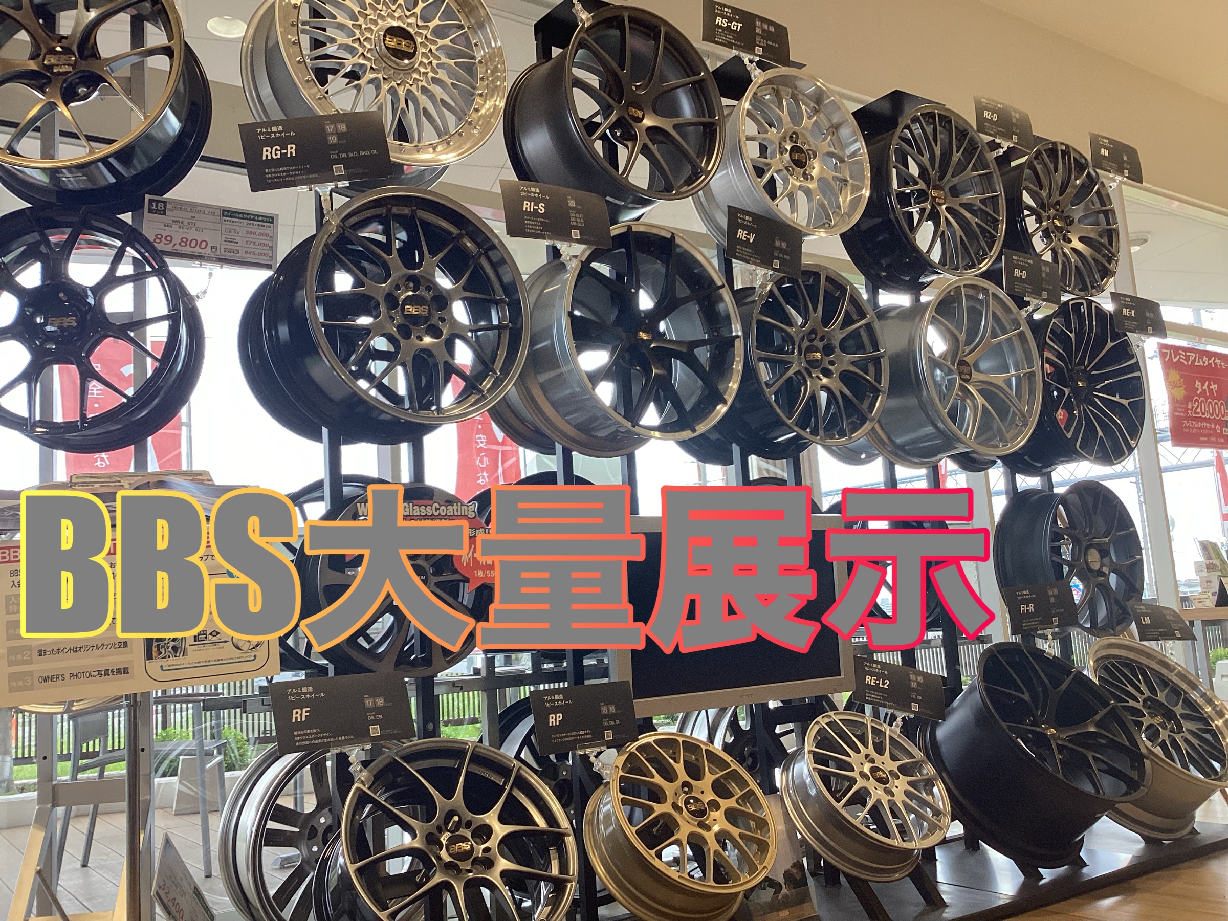 BBSホイールの展示量が多いのでわざわざ遠い所から見に来られる方も多いです♪