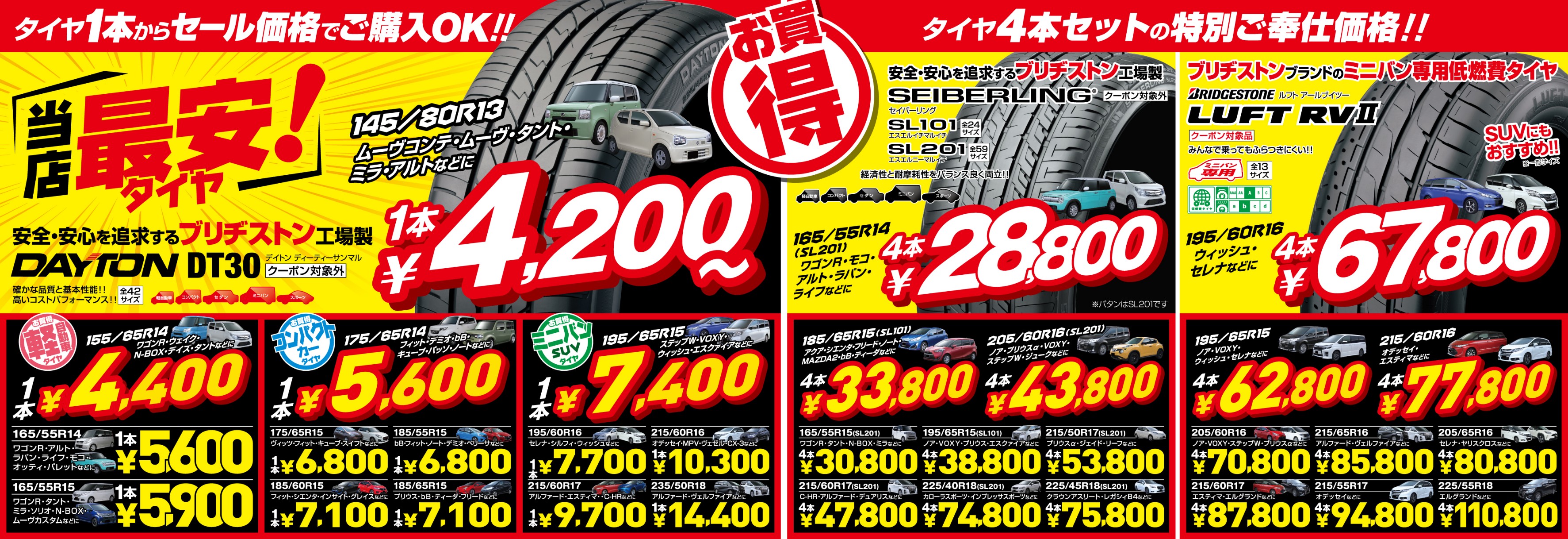 かならず全員がもらえる【タイヤクーポン】を使って頂く事でタイヤが安く買えるんです!