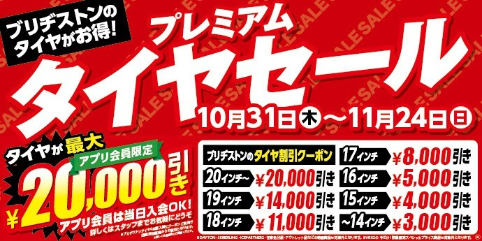 只今、タイヤ館グリーンピット大阪箕面店では【ブラックフライデー×プレミアムタイヤセール】開催中