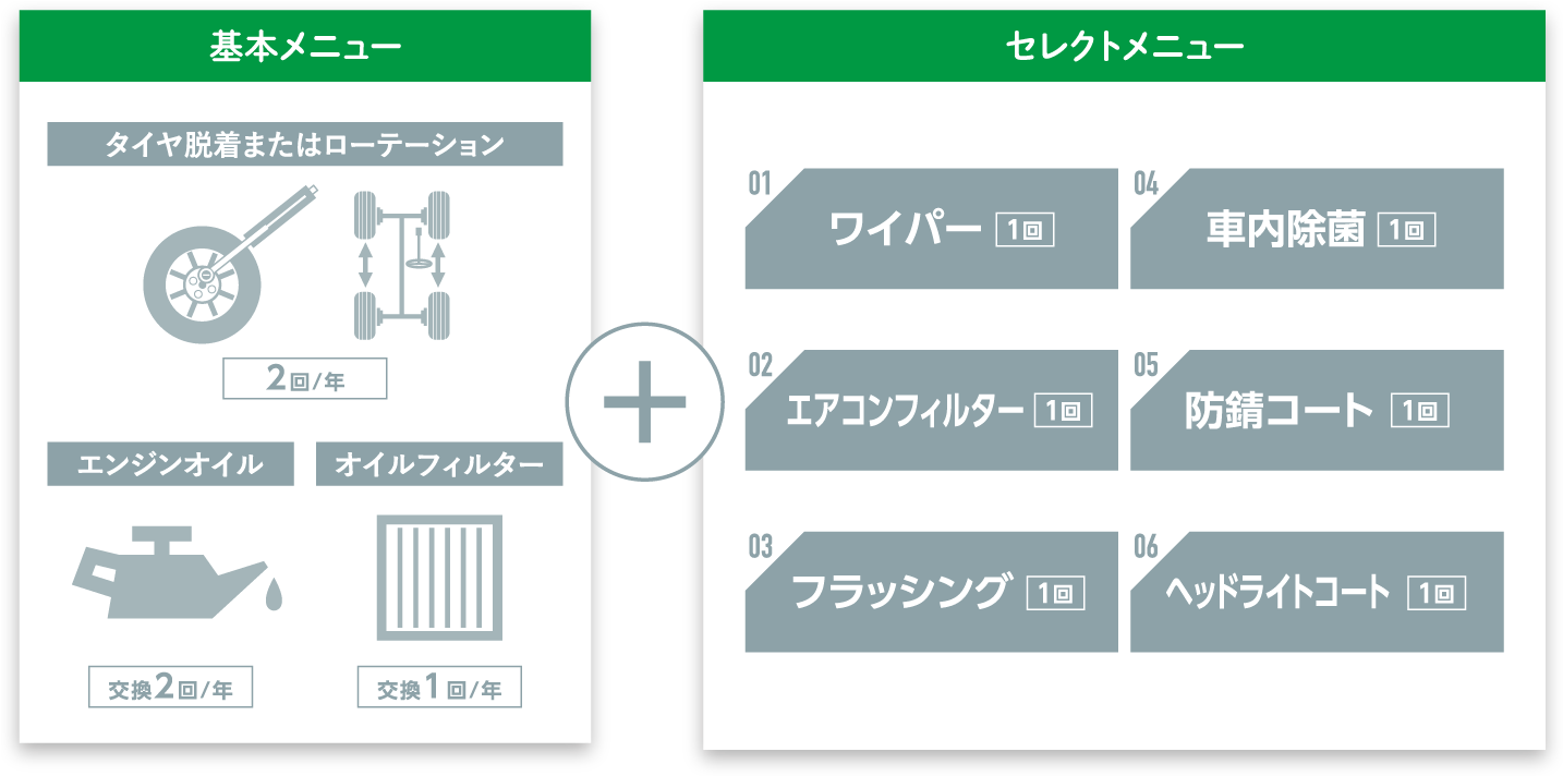 オイル交換、脱着だけではなく、カーメンテナンスといった項目から