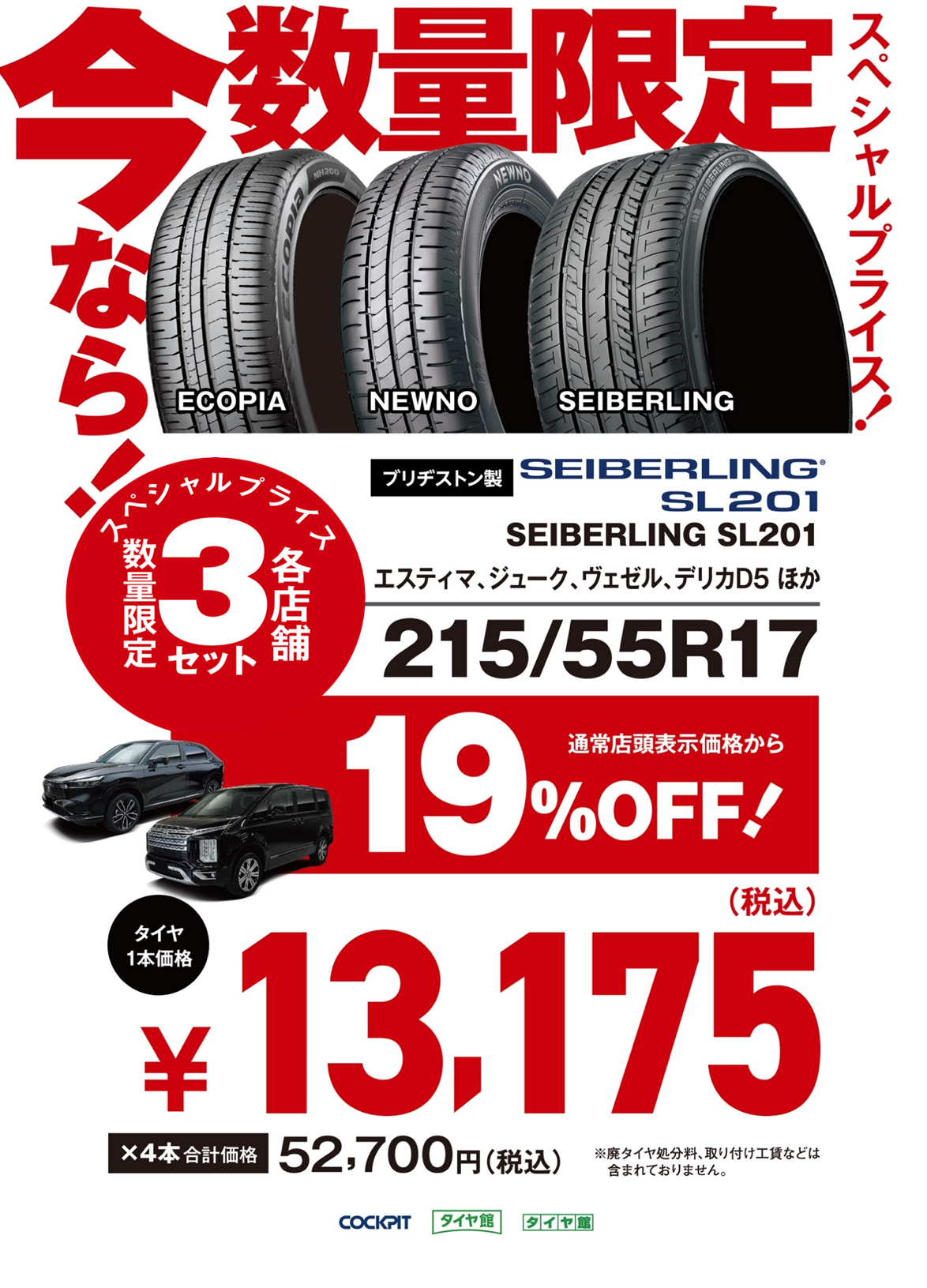 【スーパータイヤセール】×【特得セール】×【タイヤスペシャルプライスデー】3つのセールが同時開催!タイヤ買うなら今がチャンス!