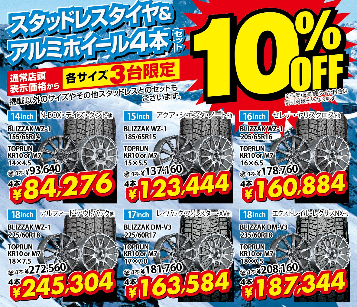 ~14インチ・・・¥3,000引き