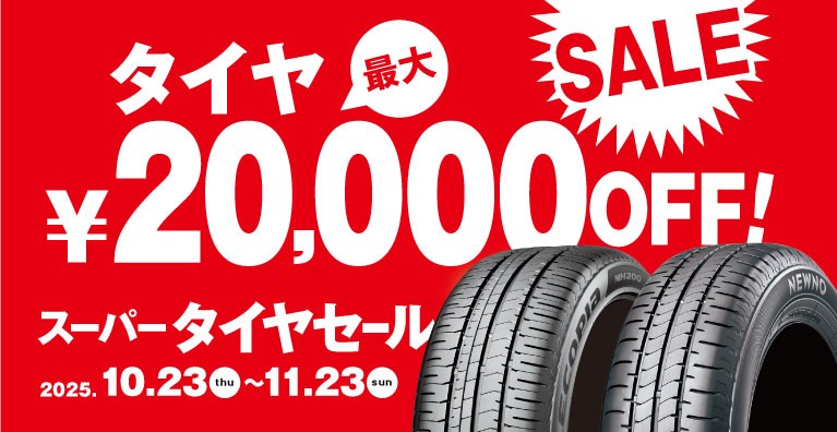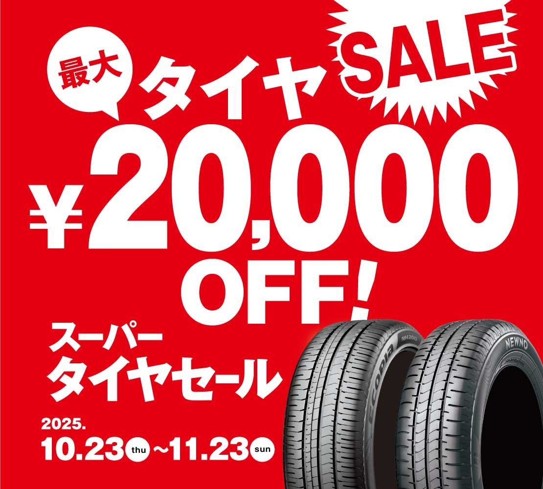 ブリヂストンのタイヤが最大20,000円OFF!