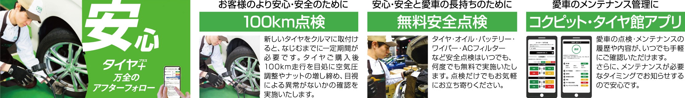 ・空気圧点検・ナット締付などのアフターサービスも無料