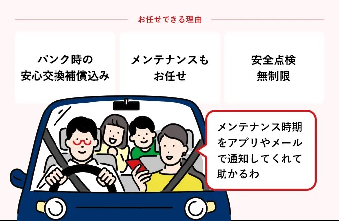 ① パンク補償&メンテナンス込みで安心!