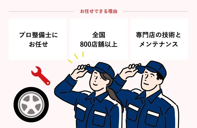 タイヤ館・コクピットなど全国800店舗以上のネットワークで、 いつでも安心してメンテナンスを受けられます。