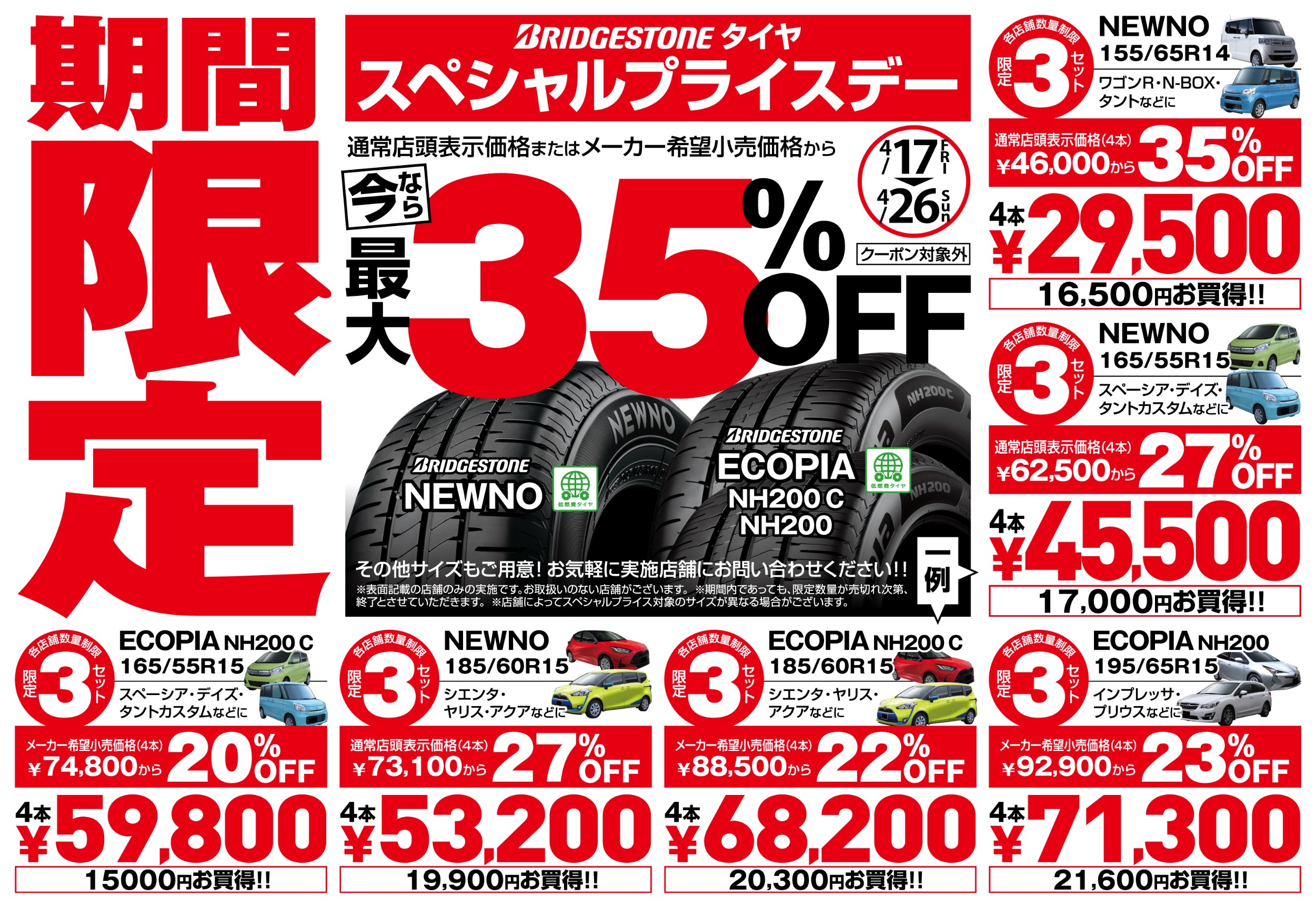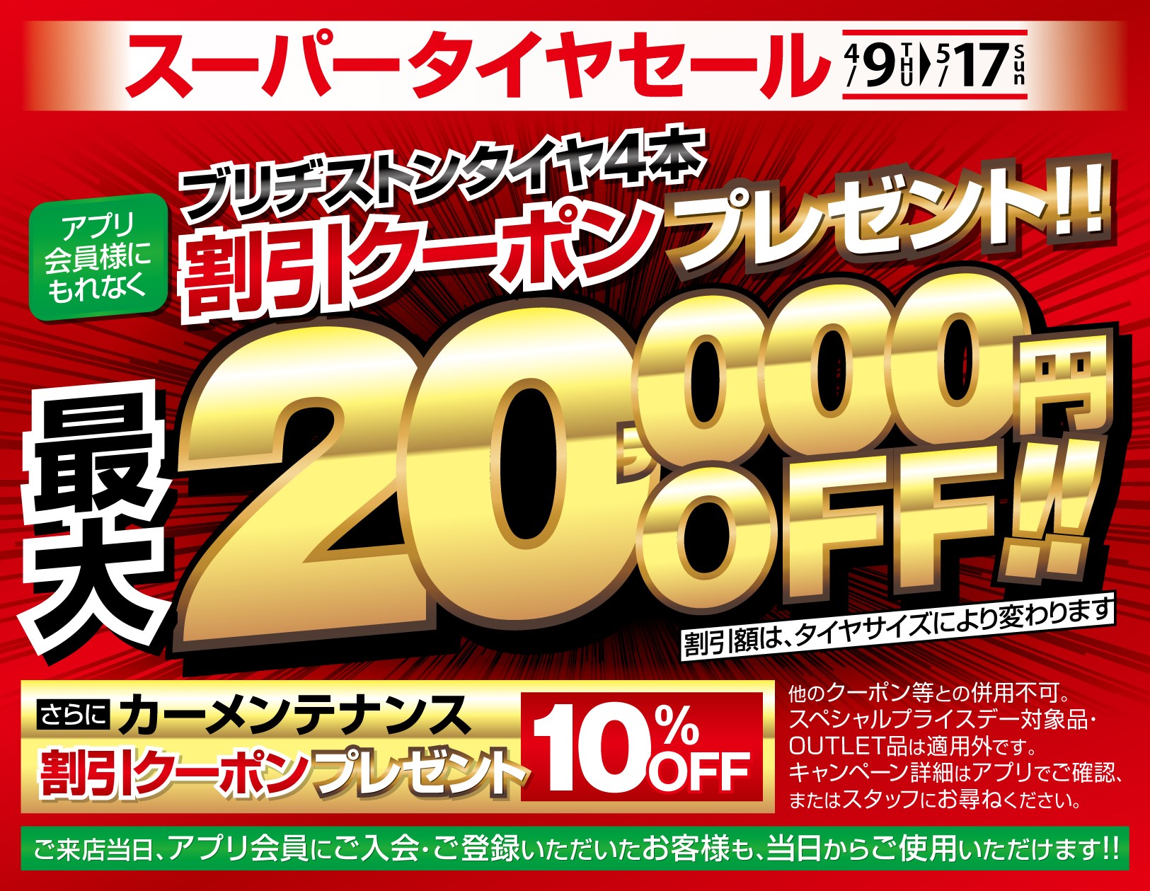 いざっっ!ゴールデンウィークセール開催中‼スーパータイヤセール同時開催中『最大20,000円OFFの特別キャンペーン(^^)/ 』タイヤの交換は今がチャンス!