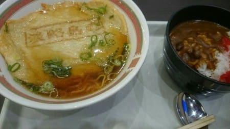 「淡路サービスエリア」の「淡路玉葱、平天載せラーメン」(うろ覚えです(´∀`;A)