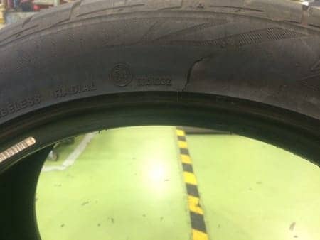 タイヤの亀裂!! ポスト 2016年5月25日 こんにちはスタッフの久松です。今日、タイヤを縁石にぶつけて亀裂が入ってしまったお客様がご来店して頂きました!側面に亀裂が入ってしまっています。このような状態になると大変危険なので皆さんも気をつけて下さい!もしこのような状態になられたら一度ご相談ください。御来店お待ちしてます。 担当:久松